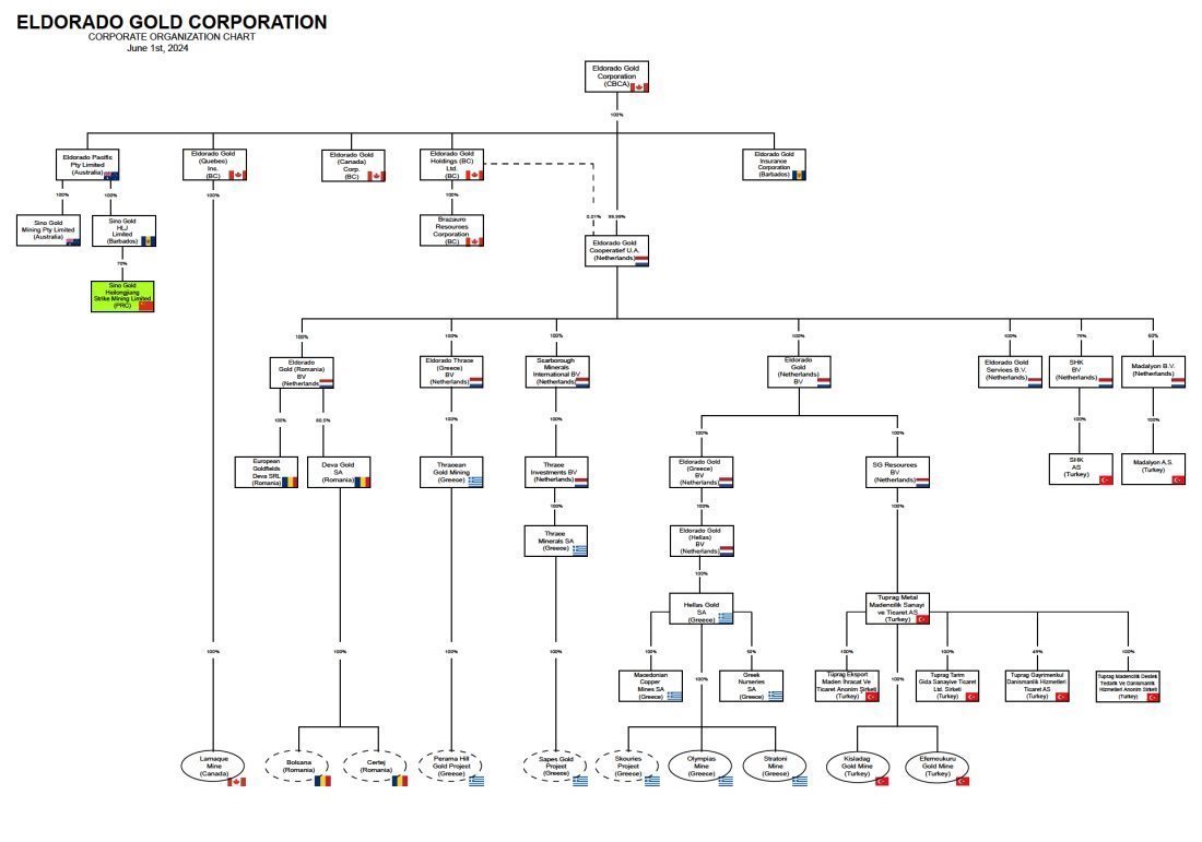 (d) Eldorado Gold Corporation Corporate Organization Chart