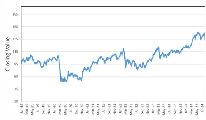 The following graph sets forth the historical performance of the SX7E based on the daily historical closing values from January 1, 2019 through August 2, 2024. We obtained the closing values below from Bloomberg. We have not undertaken any independent review of, or made any due diligence inquiry with respect to, the information obtained from Bloomberg.