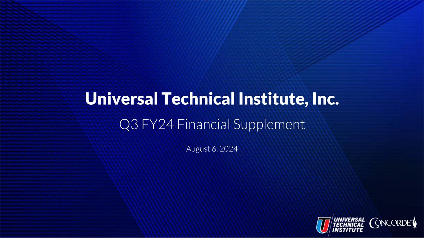 August 6, 2024 Universal Technical Institute, Inc. Q3 FY24 Financial Supplement
