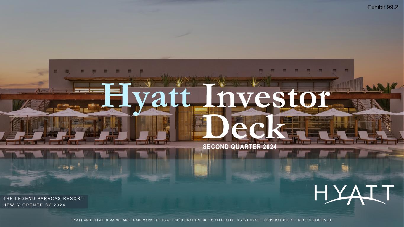 T H E L E G E N D P A R A C A S R E S O R T N E W L Y O P E N E D Q 2 2 0 2 4 Investor Deck Hyatt SECOND QUARTER 2024 H Y A T T A N D R E L A T E D M A R K S A R E T R A D E M A R K S O F H Y A T T C O R P O R A T I O N O R I T S A F F I L I A T E S . © 2 0 2 4 H Y A T T C O R P O R A T I O N . A L L R I G H T S R E S E R V E D .