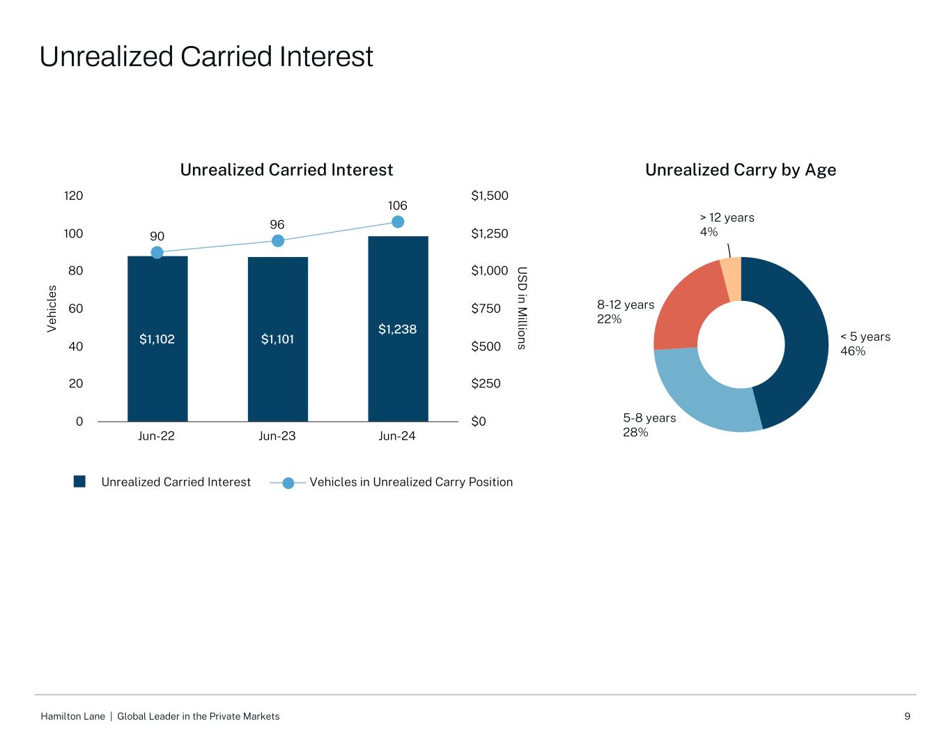9Hamilton Lane | Global Leader in the Private Markets Period Ending V eh ic le s U S D in M illions Unrealized Carried Interest $1,102 $1,101 $1,238 90 96 106 Unrealized Carried Interest Vehicles in Unrealized Carry Position Jun-22 Jun-23 Jun-24 0 20 40 60 80 100 120 $0 $250 $500 $750 $1,000 $1,250 $1,500 Unrealized Carry by Age < 5 years 46% 5-8 years 28% 8-12 years 22% > 12 years 4% Unrealized Carried Interest