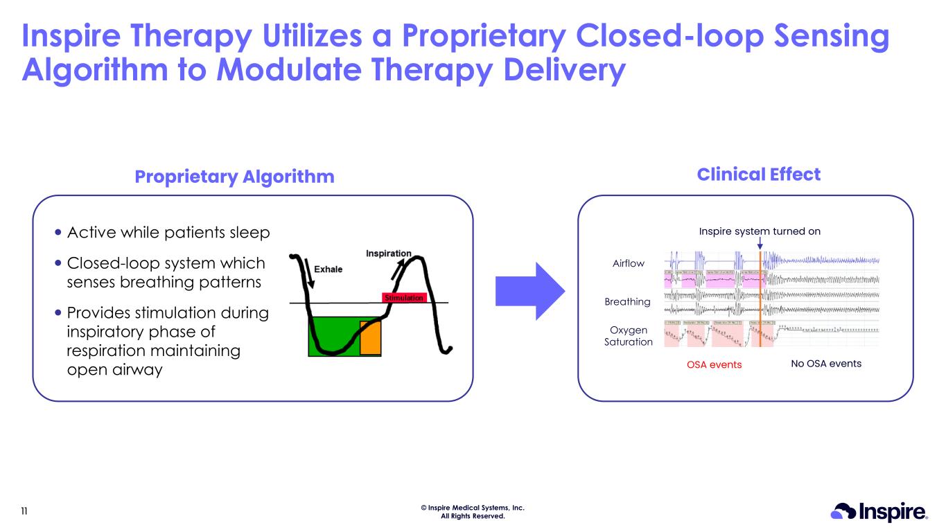 Inspire is a medical technology company focused on the development and commercialization of innovative, minimally invasive solutions for patients with obstructive sleep apnea. Inspire’s proprietary Inspire therapy is the first and only FDA, EU MDR, and PDMA-approved neurostimulation technology of its kind that provides a safe and effective treatment for moderate to severe obstructive sleep apnea.
