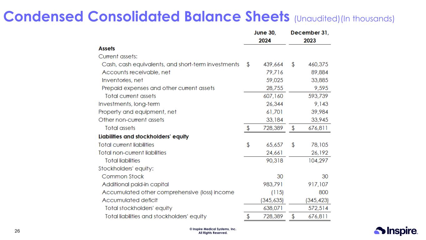 © Inspire Medical Systems, Inc. All Rights Reserved. Condensed Consolidated Balance Sheets (Unaudited)(In thousands) 26