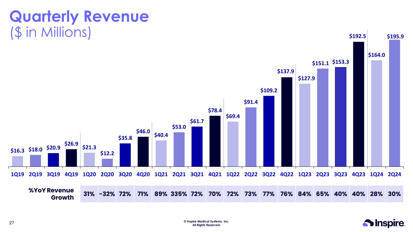 MINNEAPOLIS, MN - August 6, 2024 - Inspire Medical Systems, Inc. (NYSE: INSP) (Inspire, or the company), a medical technology company focused on the development and commercialization of innovative, minimally invasive solutions for patients with obstructive sleep apnea, today reported financial results for the quarter ended June 30, 2024.