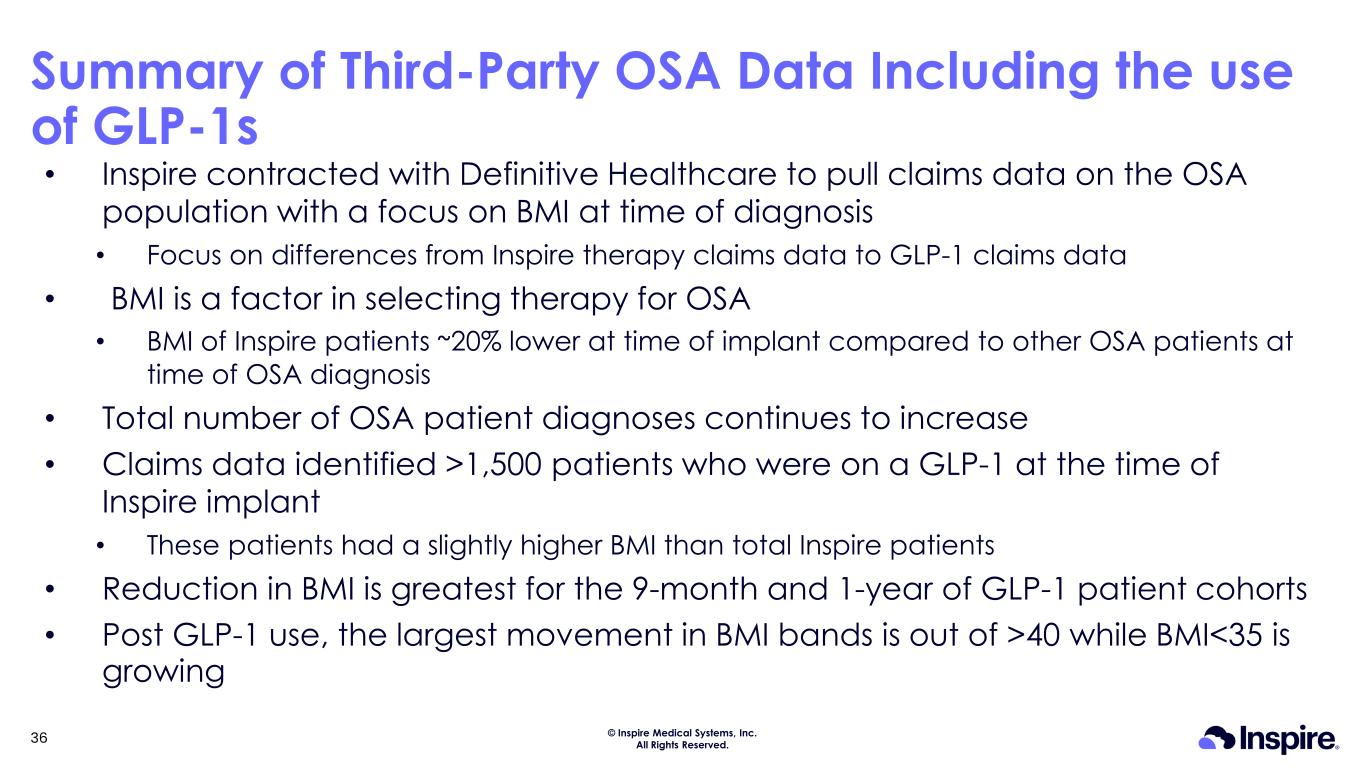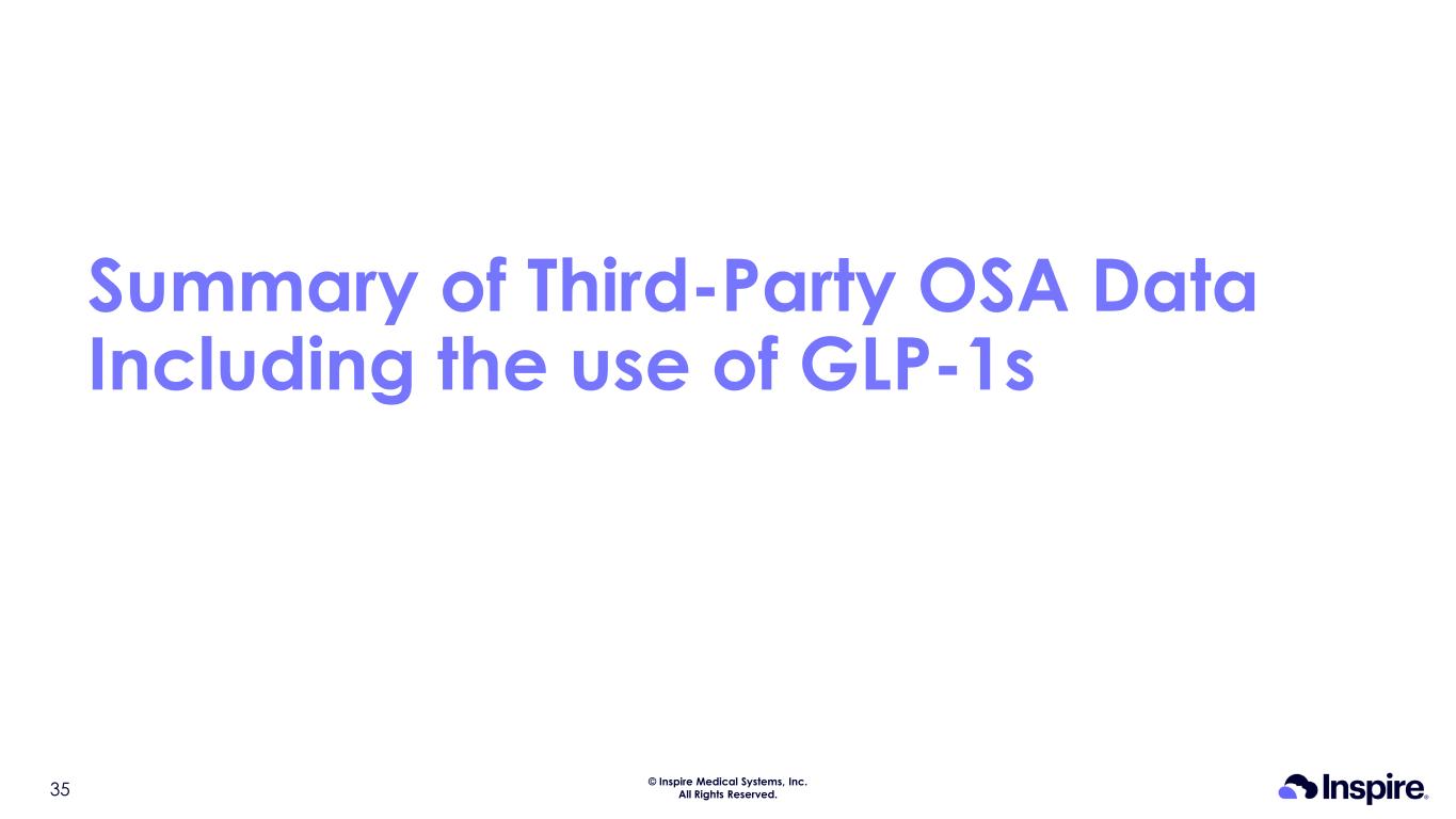 © Inspire Medical Systems, Inc. All Rights Reserved. Summary of Third-Party OSA Data Including the use of GLP-1s 35