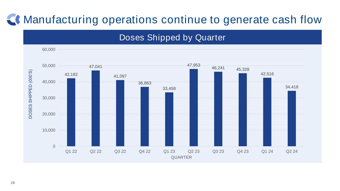 Manufacturing operations continue to generate cash flow 19 42,182 47,041 41,097 36,863 33,458 47,953 46,241 45,328 42,516 34,418 0 10,000 20,000 30,000 40,000 50,000 60,000 Q1 22 Q2 22 Q3 22 Q4 22 Q1 23 Q2 23 Q3 23 Q4 23 Q1 24 Q2 24 D O S E S S H IP P E D ( 0 0 0 ’S ) QUARTER Doses Shipped by Quarter