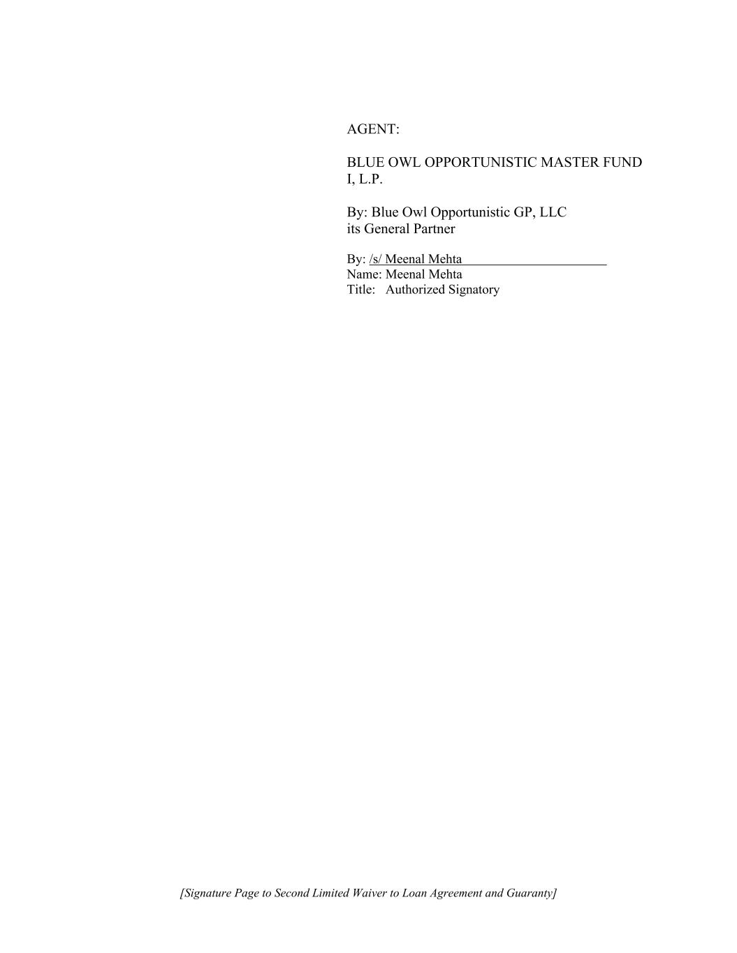 [Signature Page to Second Limited Waiver to Loan Agreement and Guaranty] AGENT: BLUE OWL OPPORTUNISTIC MASTER FUND I, L.P. By: Blue Owl Opportunistic GP, LLC its General Partner By: /s/ Meenal Mehta Name: Meenal Mehta Title: Authorized Signatory