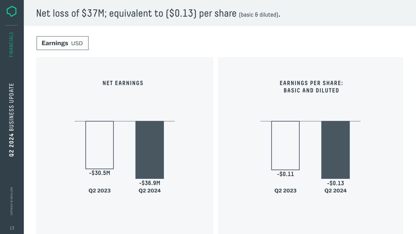 ●Net Loss – Net loss of $36.9 million, or $(0.13) per share on a basic and diluted basis, compared to net loss of $30.5 million, or $(0.11) per share on a basic and diluted basis in Q2 2023.
