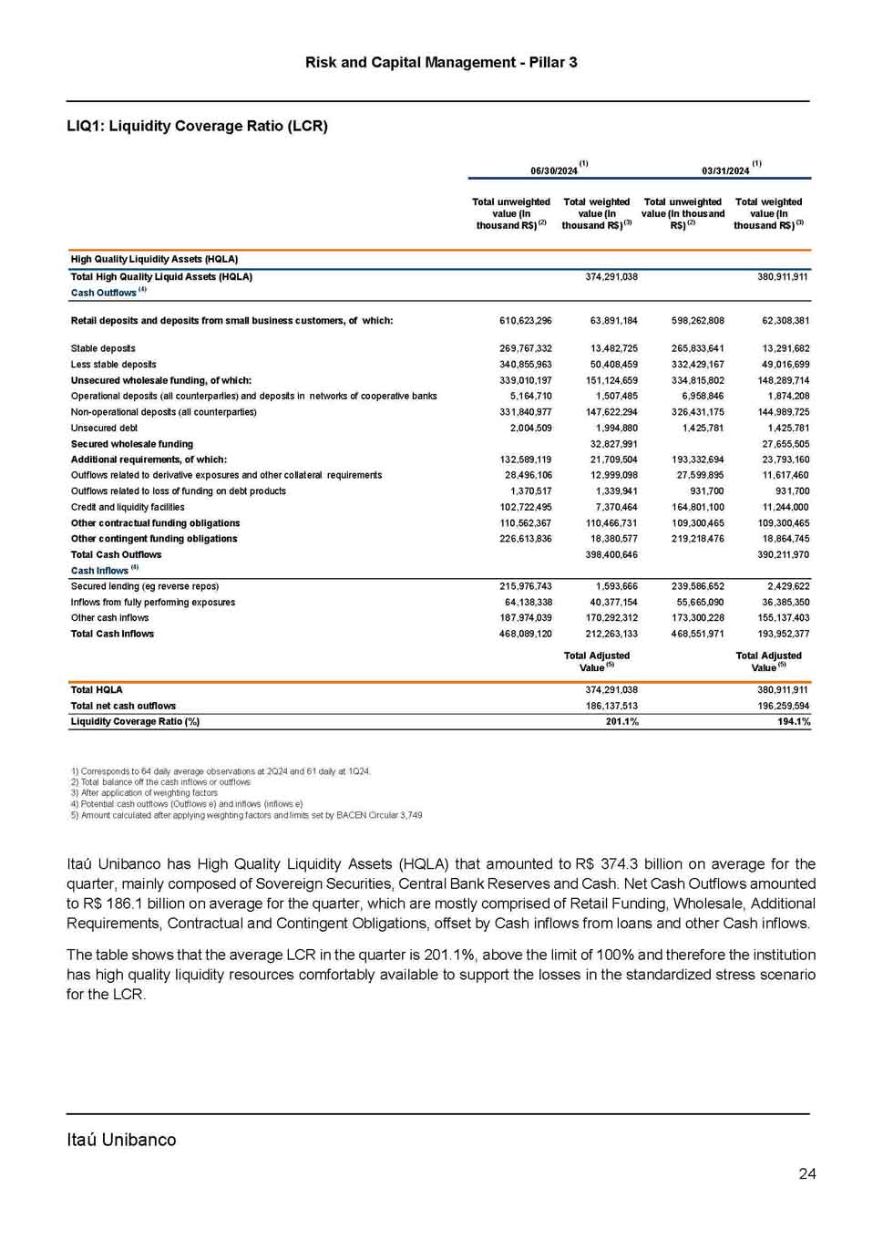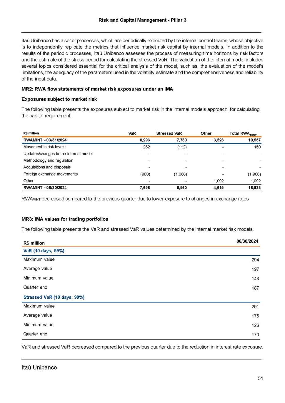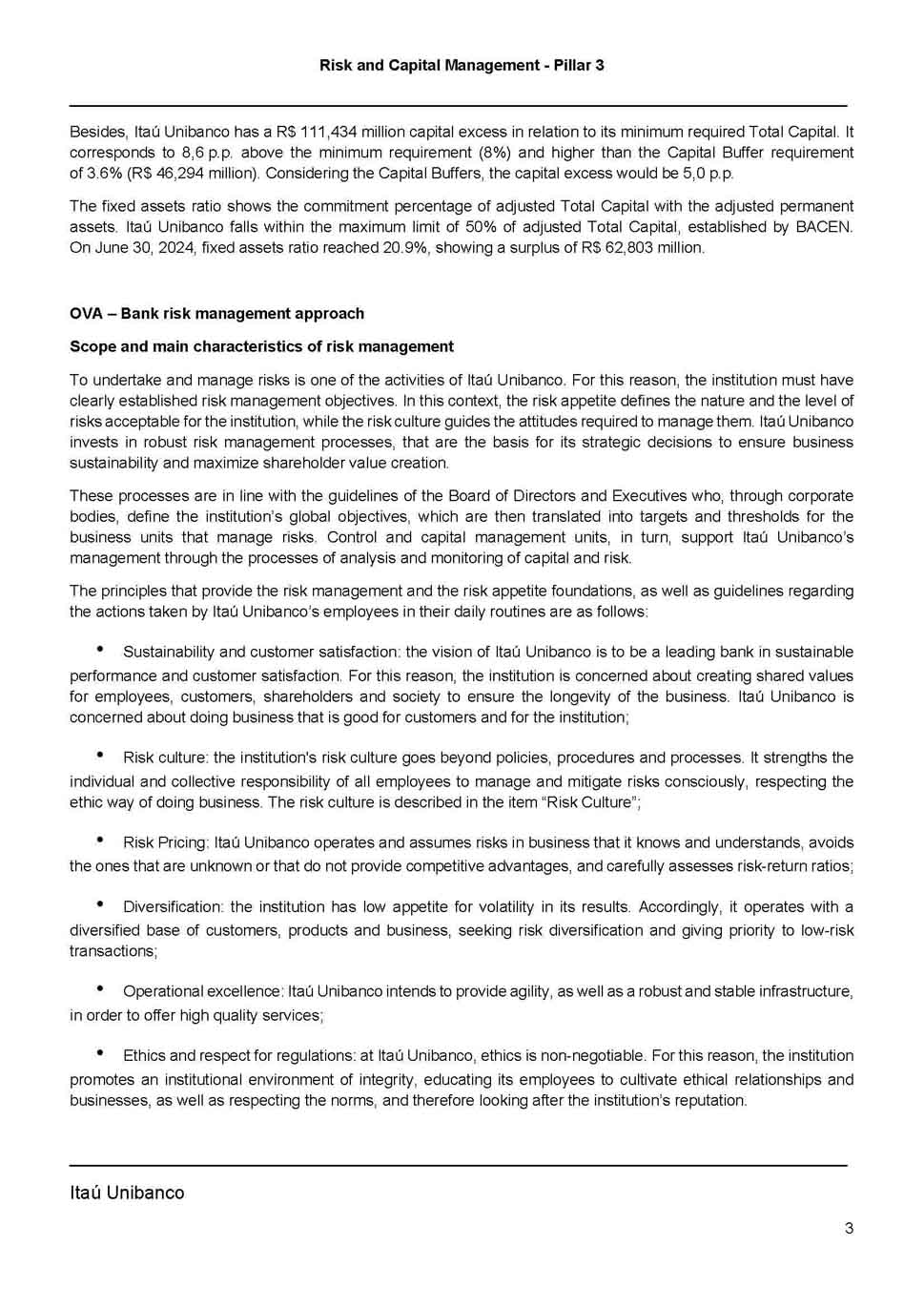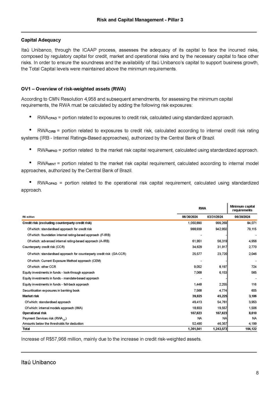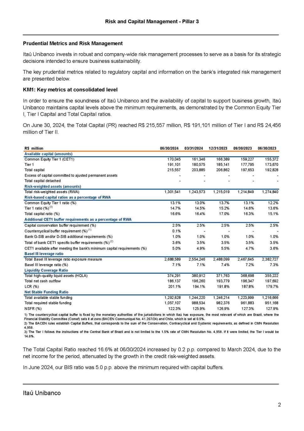 99.1    ITAÚ UNIBANCO - ANNOUNCEMENT TO THE MARKET - Risk And Capital Management Pillar 3 - 2Q24