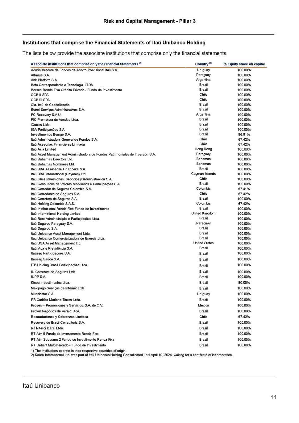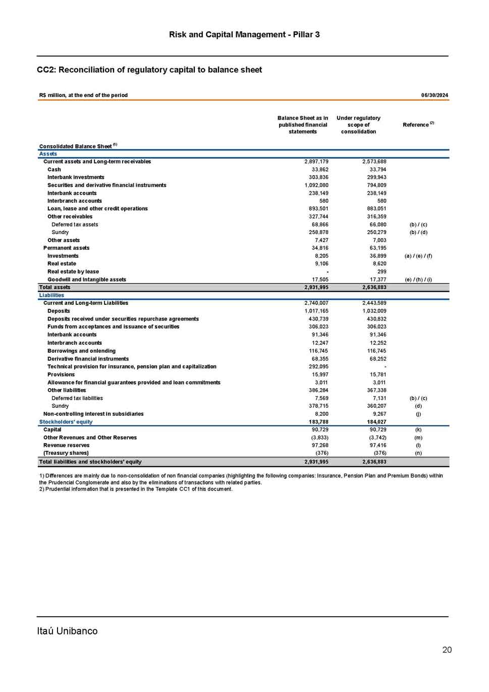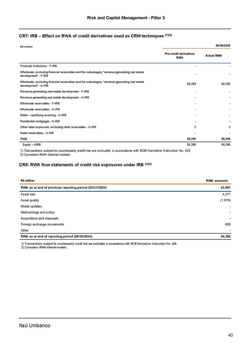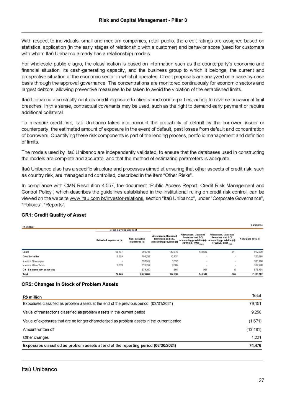99.1    ITAÚ UNIBANCO - ANNOUNCEMENT TO THE MARKET - Risk And Capital Management Pillar 3 - 2Q24