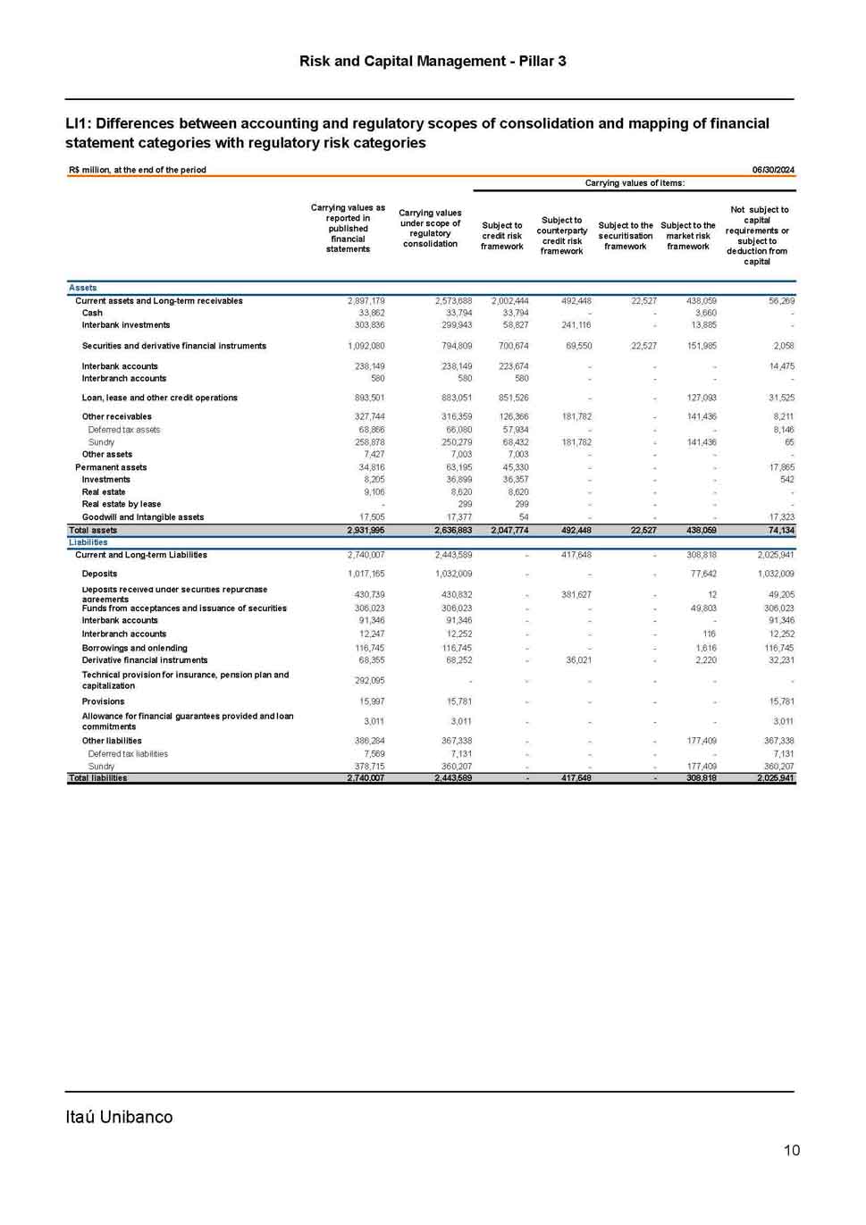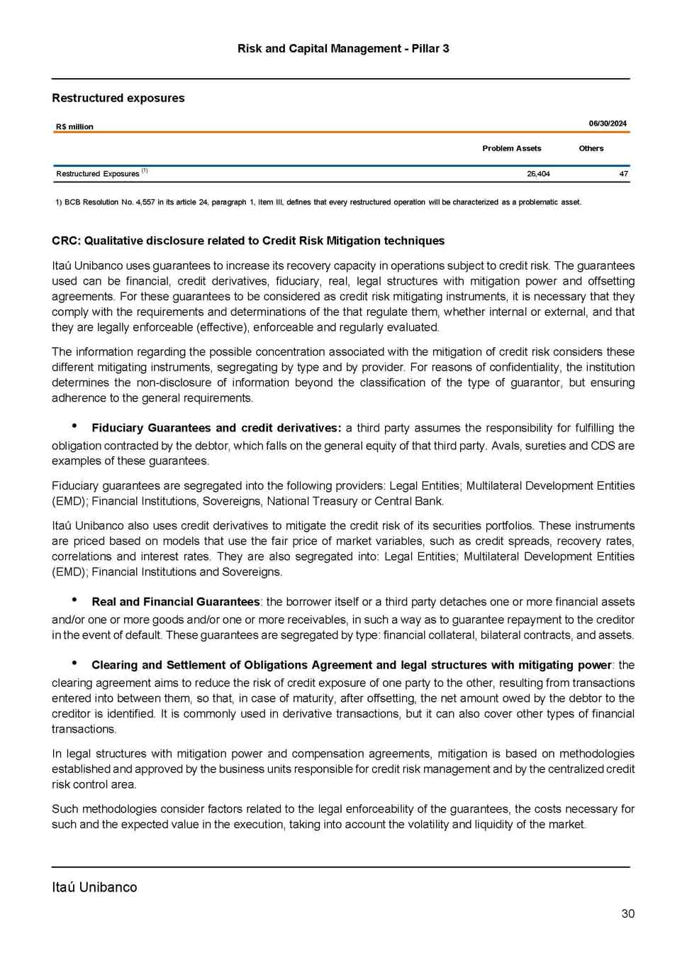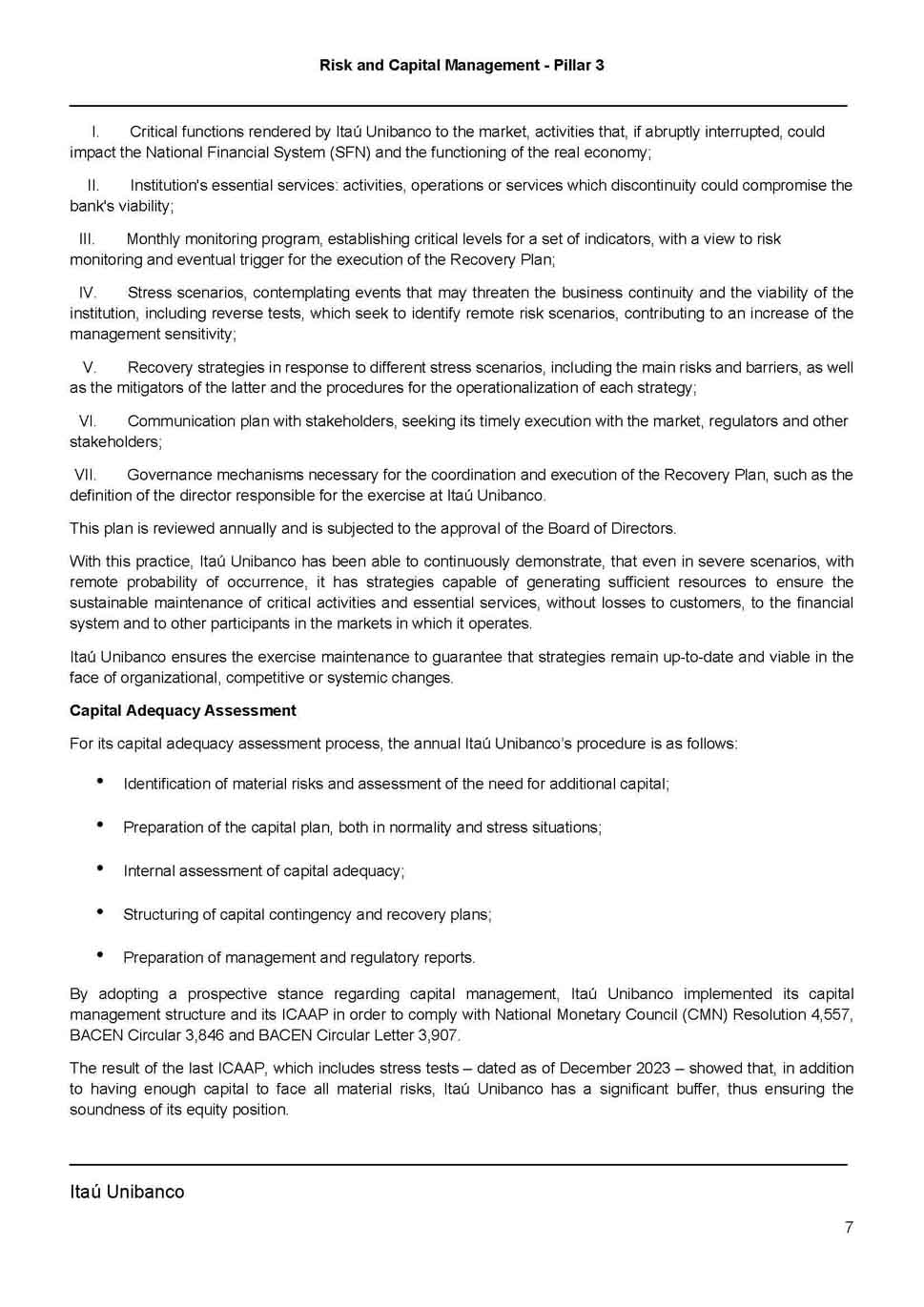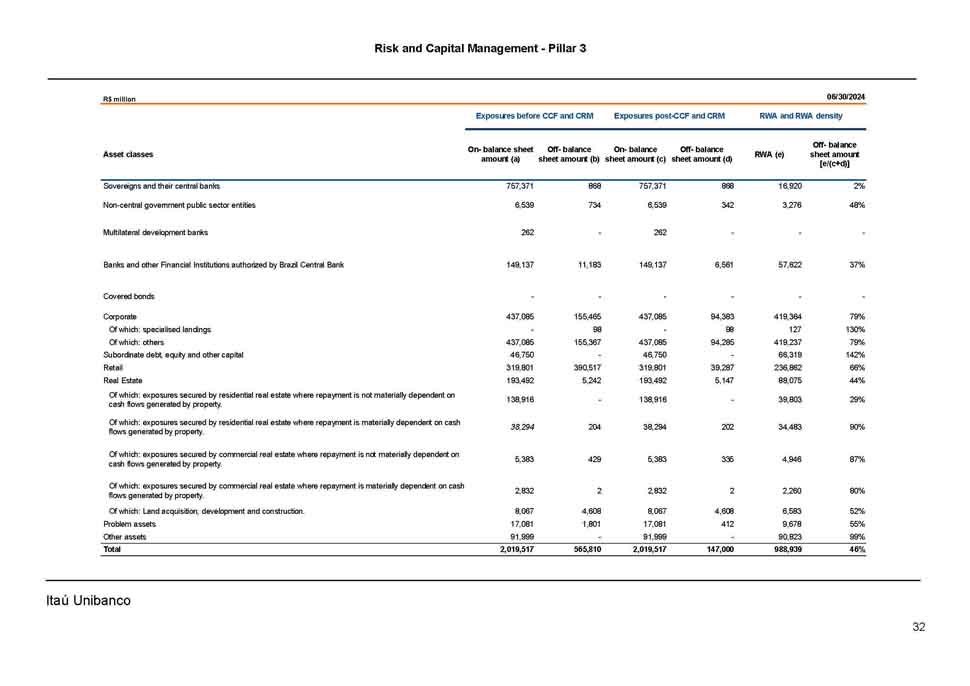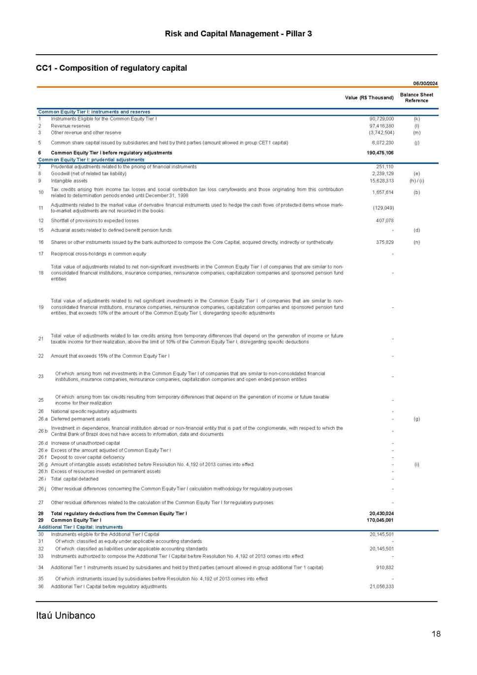 99.1    ITAÚ UNIBANCO - ANNOUNCEMENT TO THE MARKET - Risk And Capital Management Pillar 3 - 2Q24