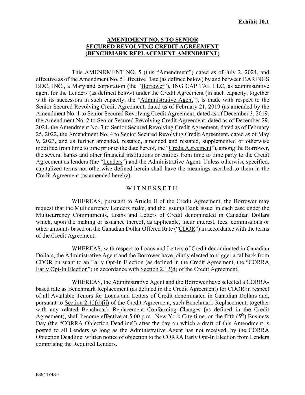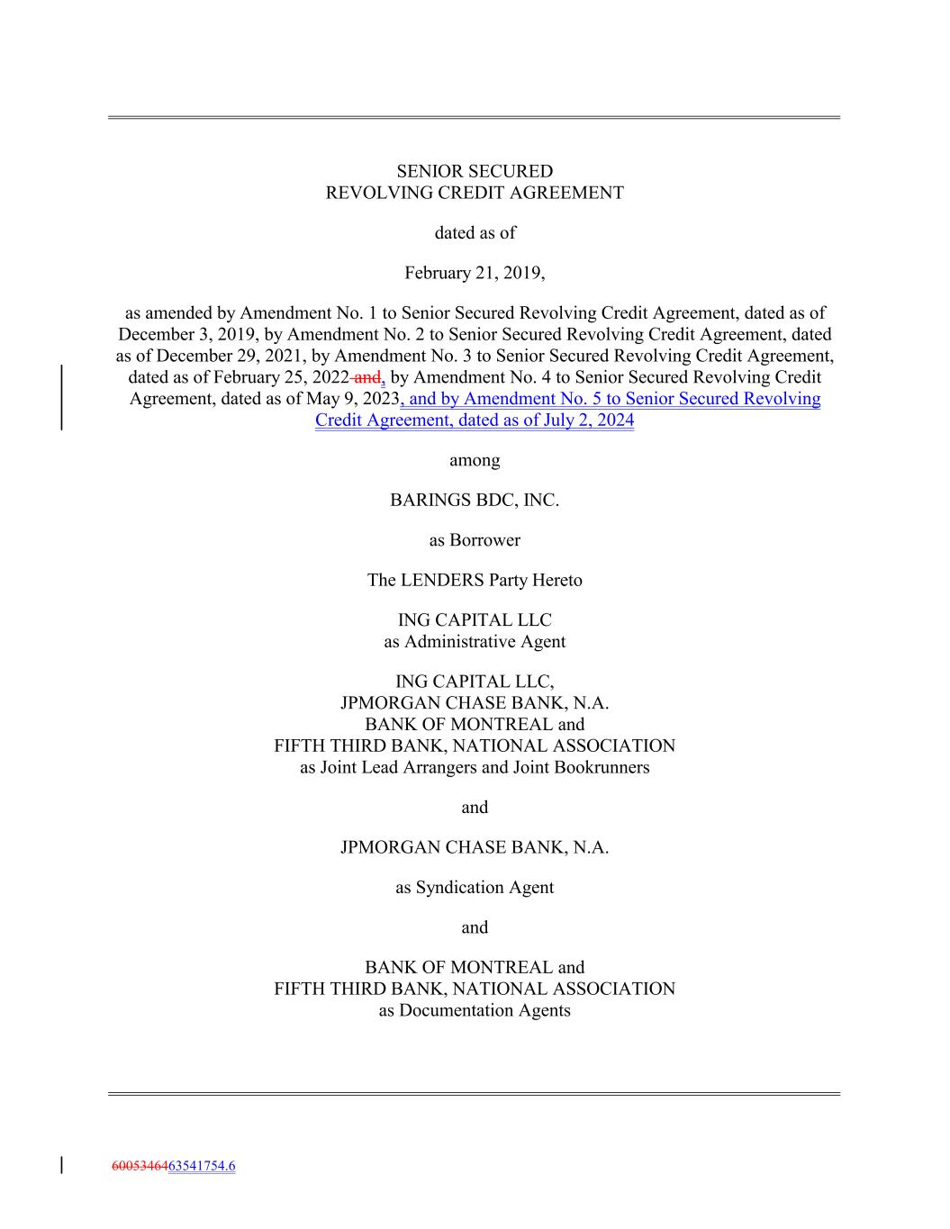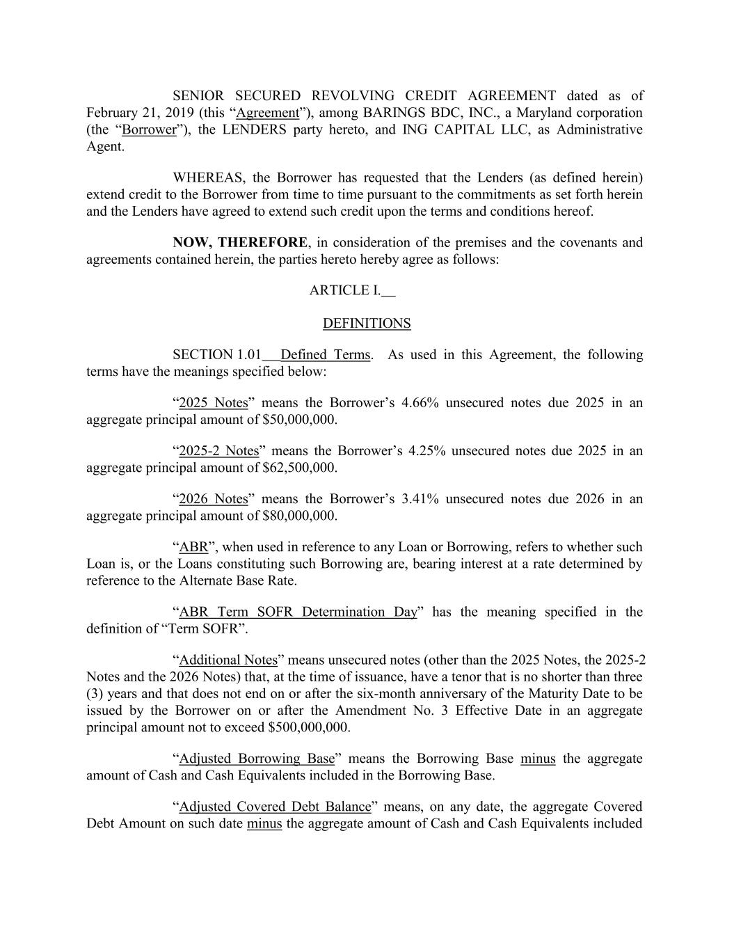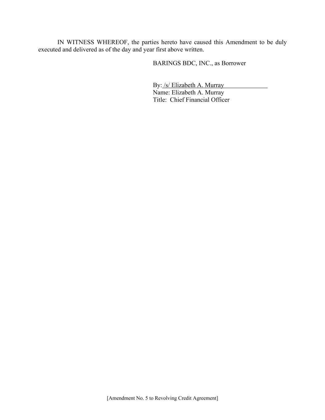[SIGNATURE PAGES INTENTIONALLY OMITTED] IN WITNESS WHEREOF, the parties hereto have caused this Agreement to be duly executed by their respective authorized officers as of the day and year first above written. BARINGS BDC, INC. By: Name: Title: 1