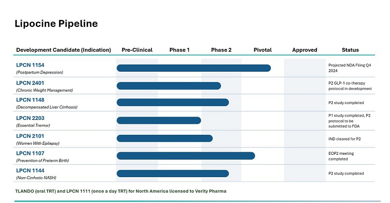 We have focused a significant portion of our efforts on developing TLANDO and more recently on LPCN 1154, LPCN 1148, and LPCN 1144. We have funded our operations to date through sales of our equity securities, debt and payments received under our license and collaboration arrangements. We have incurred losses in most years since our inception. As of June 30, 2024, we had an accumulated deficit of $199.3 million. Substantially all of our operating losses resulted from costs incurred in connection with our research and development programs and from general and administrative costs associated with our operations. These losses, combined with expected future losses, have had and will continue to have an adverse effect on our stockholders’ equity. We expect to continue to incur significant research and development expenses in connection with clinical trials associated with LPCN 1154, and potentially with LPCN 2401, LPCN 2101, LPCN 2203, LPCN 1148, LPCN 1144 and LPCN 1107, if further clinical trials are initiated. As a result, we expect to continue to incur significant operating losses for the foreseeable future as we evaluate further clinical development of LPCN 1154, LPCN 2401, LPCN 2101, LPCN 2203, and possibly LPCN 1148, LPCN 1144, and LPCN 1107, in addition to our other programs and continued research efforts. Because of the numerous risks and uncertainties associated with developing pharmaceutical products, we are unable to predict the extent of any future losses or when we will become profitable, if at all.