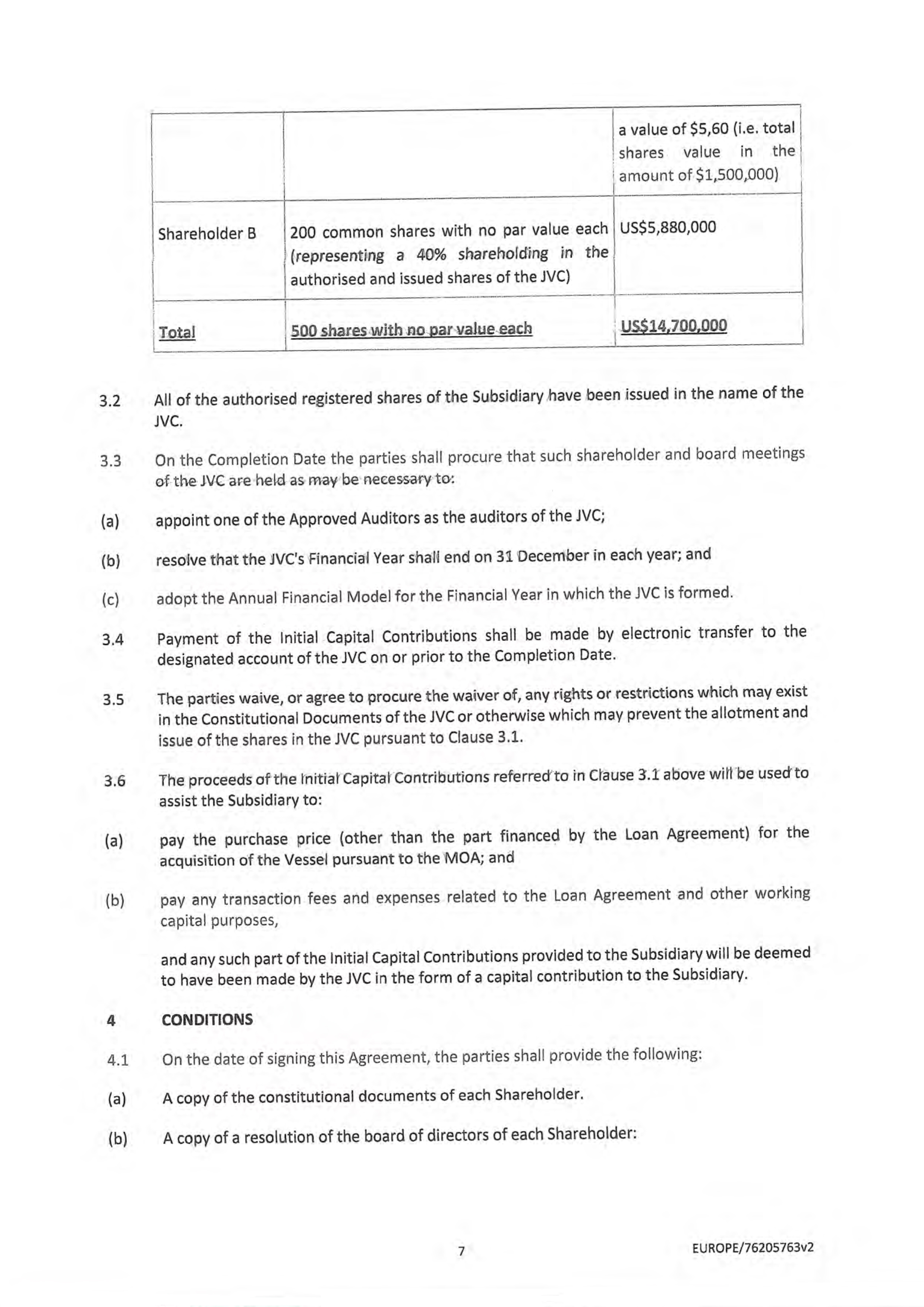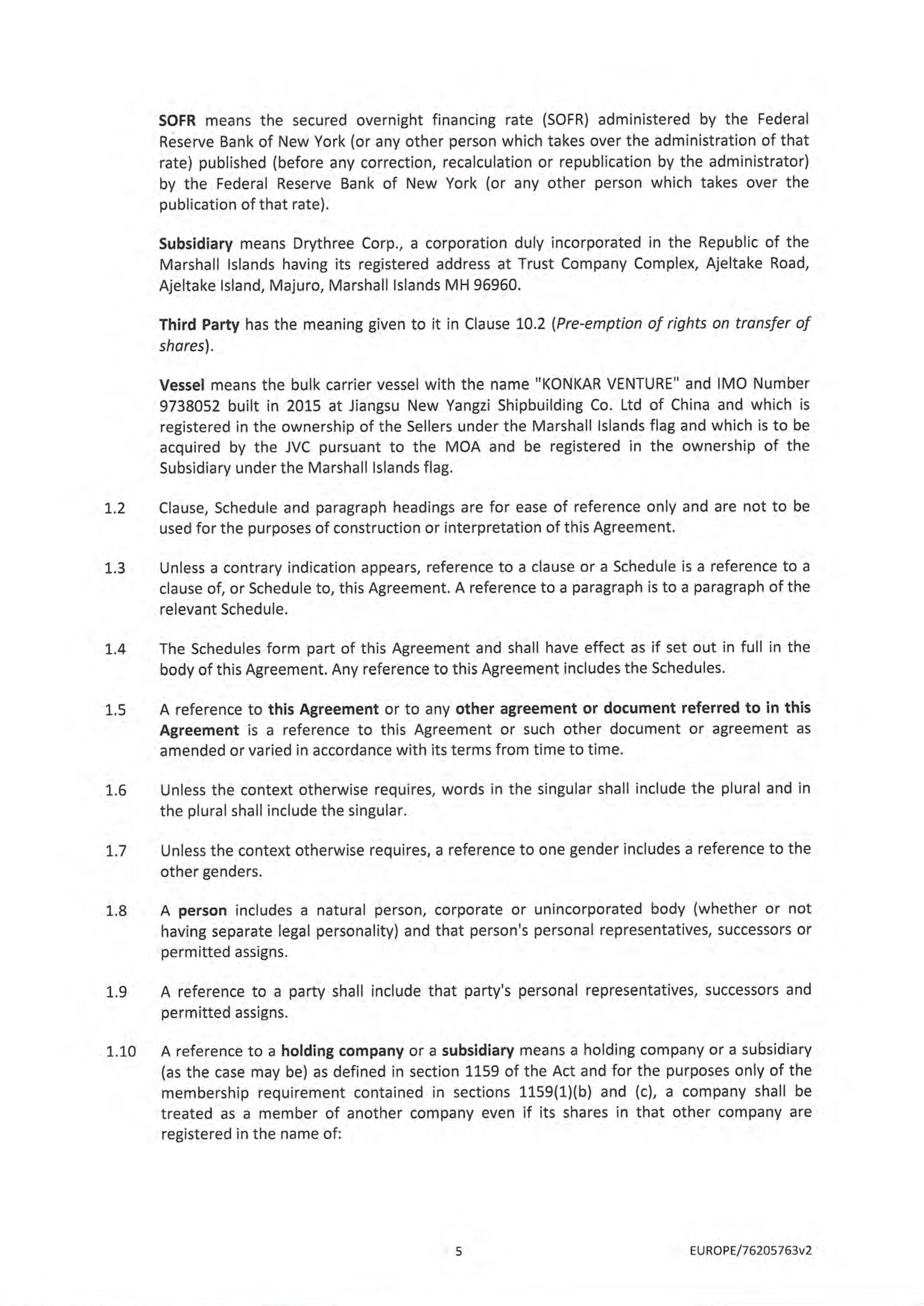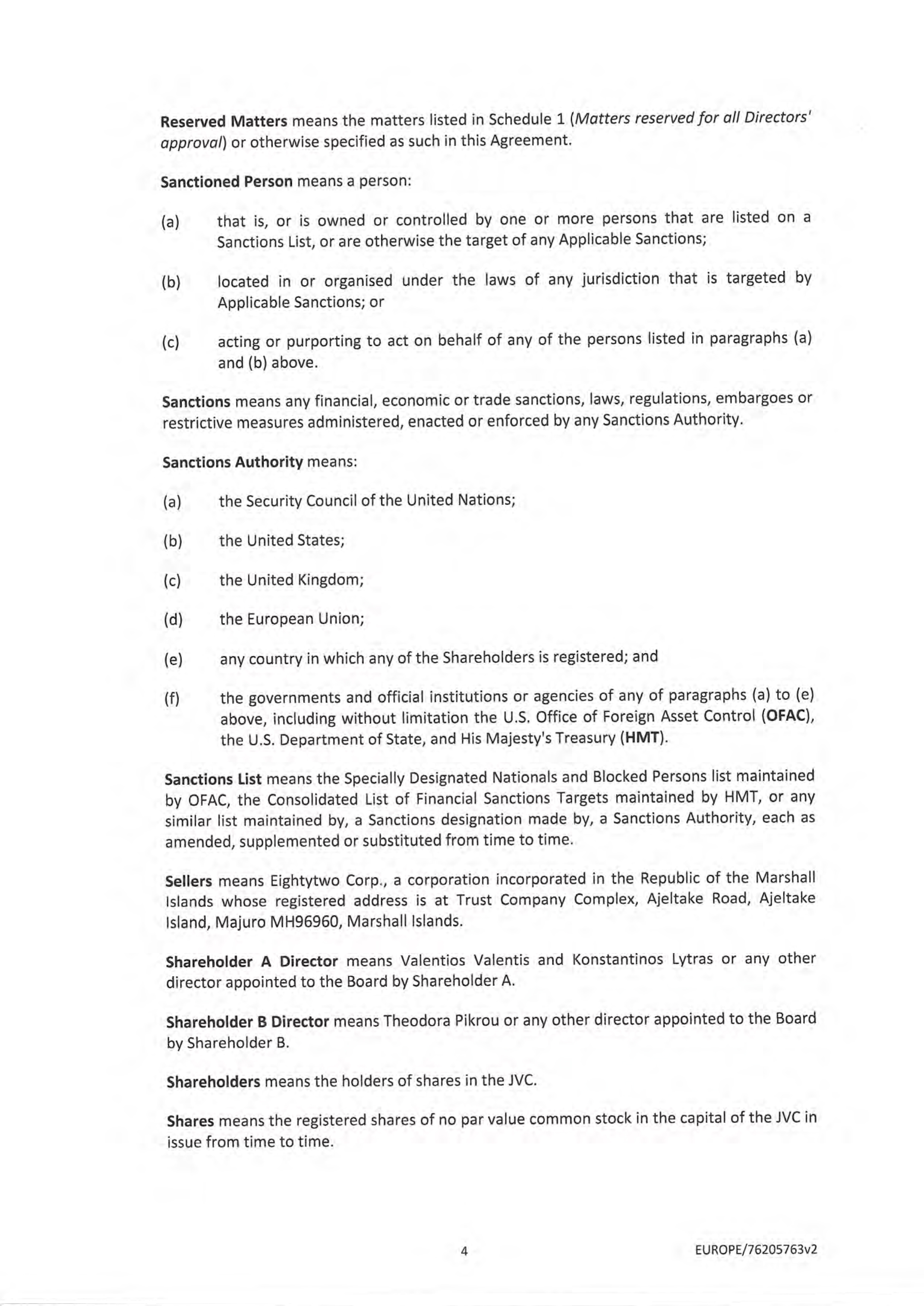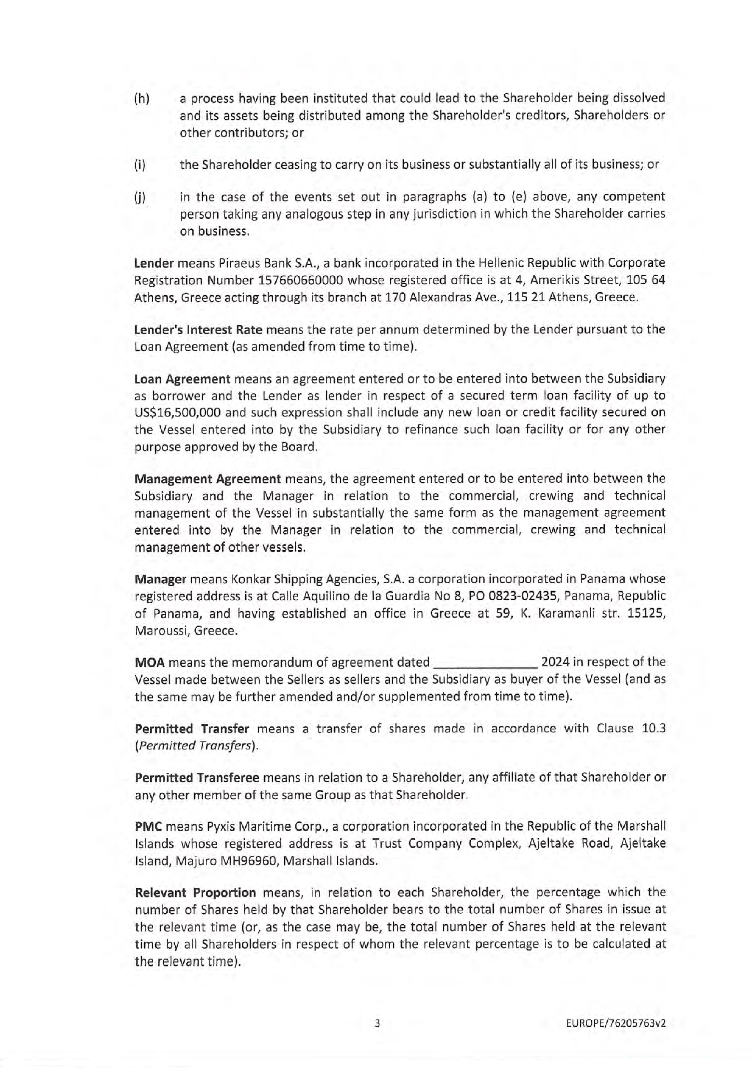 In May 2024, the Issuer entered into an agreement with an entity related to Mr. Valentis, to acquire, through a joint venture, a dry-bulk vessel. The purchase price of the vessel was $30.0 million, which, in conjunction with working capital and transaction fees and expenses, was funded by $16.5 million of bank debt, $12.0 million total cash, of which the Company contributed $7.3 million in cash, and the issuance of 267,857 restricted Shares to the related third party seller. The joint venture acquisition closed on June 28, 2024 and the 267,857 restricted Shares were issued to MIC effective August 5, 2024. The Shares are subject to a one year lock-up from the date of the closing of such acquisition.