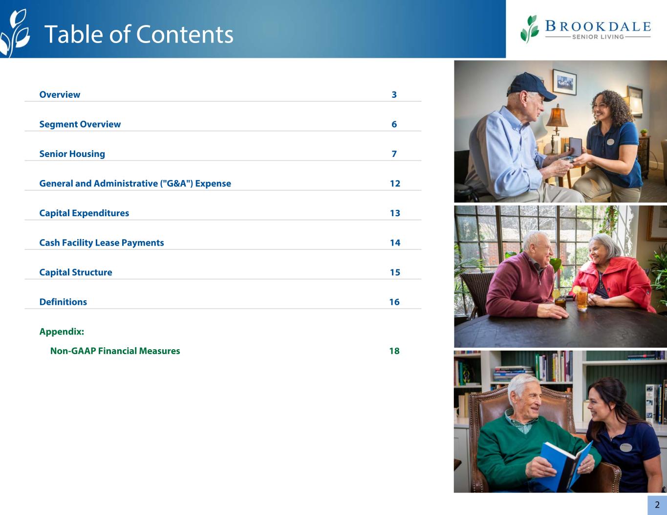 2 Overview 3 Segment Overview 6 Senior Housing 7 General and Administrative ("G&A") Expense 12 Capital Expenditures 13 Cash Facility Lease Payments 14 Capital Structure 15 Definitions 16 Appendix: Non-GAAP Financial Measures 18 Table of Contents