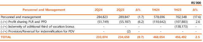 | Personnel and management | (284,823) | (289,847) | (2) | (578,696) | (702,548) | (17.6) |