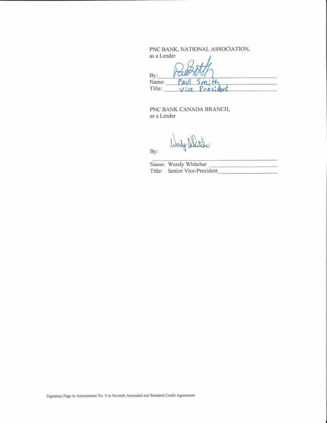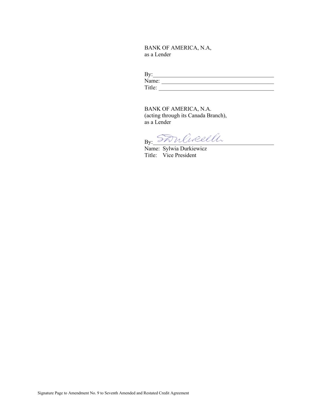 Signature Page to Amendment No. 9 to Seventh Amended and Restated Credit Agreement BANK OF AMERICA, N.A, as a Lender By: __________________________________________ Name: _______________________________________ Title: ________________________________________ BANK OF AMERICA, N.A. (acting through its Canada Branch), as a Lender By: __________________________________________ Name: Sylwia Durkiewicz Title: Vice President