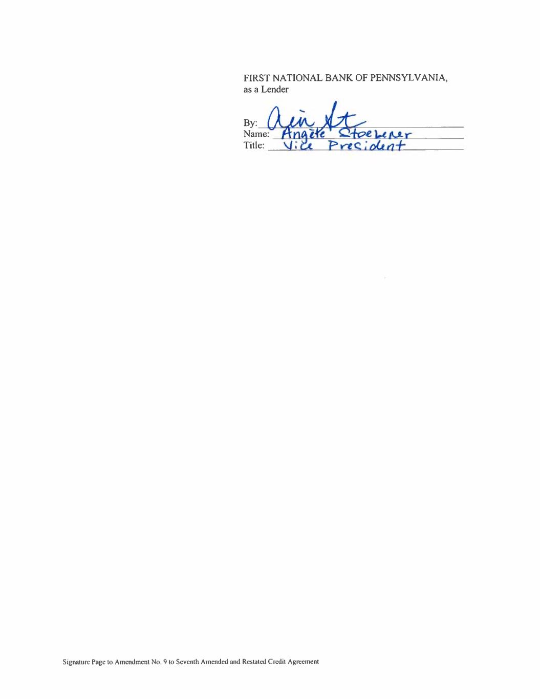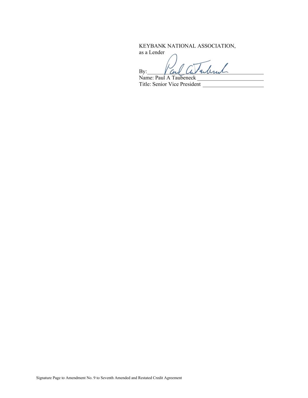 Signature Page to Amendment No. 9 to Seventh Amended and Restated Credit Agreement KEYBANK NATIONAL ASSOCIATION, as a Lender By: __________________________________________ Name: Paul A Taubeneck ________________________ Title: Senior Vice President ______________________