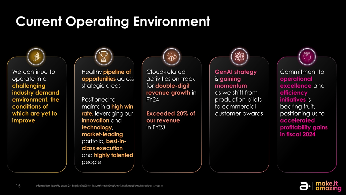 On August 7, 2024 Amdocs Limited (Amdocs) issued a press release announcing financial results for the quarter ended June 30, 2024. A copy of the press release and the accompanying presentation are furnished as Exhibits 99.1 and 99.2 to this Report of Foreign Private Issuer on Form 6-K.