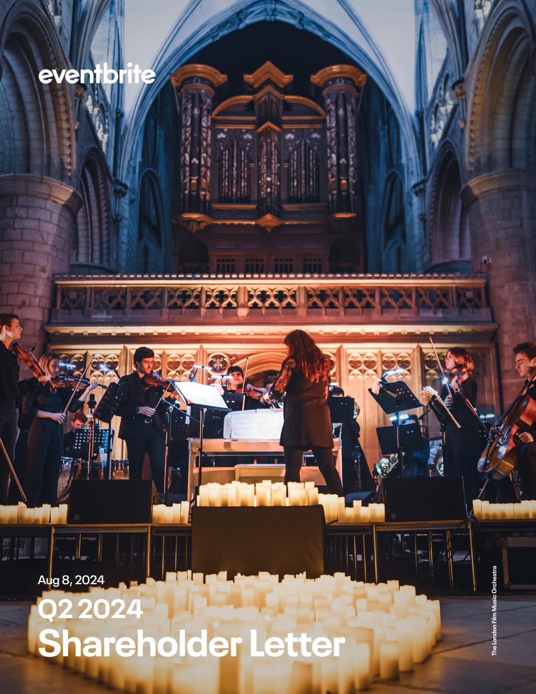 Dear Eventbrite Shareholder, During the second quarter and first half of 2024, our Eventbrite team has remained focused on the ongoing transformation of our business into a vibrant two-sided marketplace for live events. We believe this transformation will meaningfully expand our addressable opportunity over time and enable us to better capture it. We made significant strategic progress during the quarter, particularly on our consumer experience, mobile app users, and Eventbrite ads, bolstering confidence in our plan’s powerful potential. Eventbrite continues to be both a partner of choice for mid-market creators and a trusted resource for consumers seeking high-quality live experiences. In the second quarter of the year, we connected 27.4 million free and paid ticket buyers with 358,000 creators across a wide variety of categories and locations. In total, we issued 67 million tickets to more than 1.4 million free and paid events, and $840 million in total ticket value was transacted in our marketplace. Second quarter paid ticketing volume, however, was down 9% compared to the prior year, and continuing to trend lower at the start of the second half. The pricing model changes we began implementing last year, including the introduction of organizer fees, are impacting creator acquisition and retention and reducing event inventory and ticket volume. To address this, we plan to make meaningful adjustments to our pricing plans in the near term. The expected impact of changes to our pricing plans and lower paid ticket volume has been reflected in our updated business outlook below. The Rock Orchestra MEGA Events Museums, caves, airfields, and cathedrals might not strike you as typical party hotspots. But the novelty of dancing the night away in unusual places is what makes Silent Discos in Incredible Places so memorable—and unmissable. It’s just one of many innovative event concepts from MEGA Events, a pioneering experiential events company that spans pop culture, music, and entertainment. UK-based founder Nathan Reed and team are experts at tapping into the cultural zeitgeist of what people want to do and making it happen on a huge scale. MEGA Events is Eventbrite’s top EMEA creator and hosts events worldwide. Page 3Eventbrite Q2 2024 Shareholder Letter