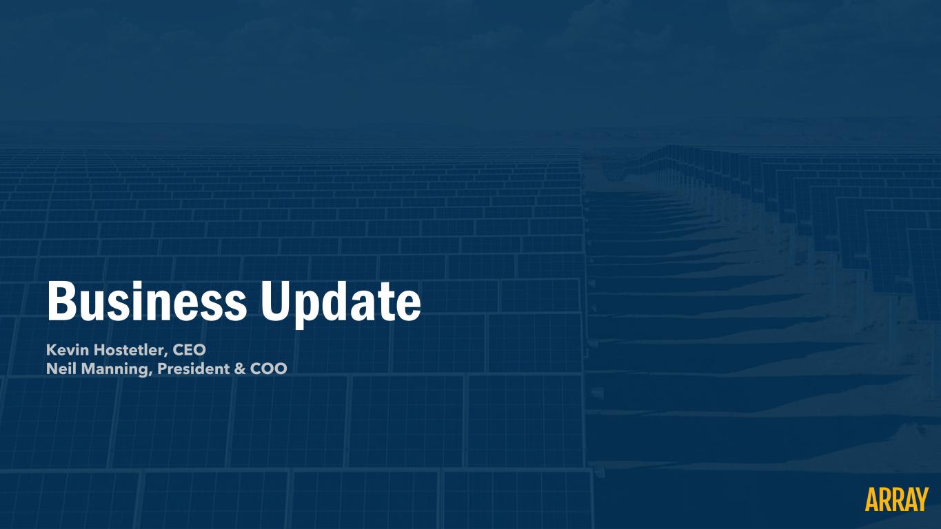 1 Disclaimer Forward-Looking Statements and Other Information This presentation contains forward-looking statements that are based on our management’s beliefs and assumptions and on information currently available to our management. Forward-looking statements include information concerning our projected future results of operations, sales volume, project timing, and industry and regulatory environment. Forward-looking statements include statements that are not historical facts and can be identified by terms such as “anticipate,” “believe,” “could,” “estimate,” “expect,” “intend,” “may,” “plan,” “potential,” “predict,” “project,” "seek," “should,” “will,” “would” or similar expressions and the negatives of those terms. Array’s actual results and the timing of events could materially differ from those anticipated in such forward-looking statements as a result of certain risks, uncertainties and other factors, including without limitation: changes in growth or rate of growth in demand for solar energy projects; competitive pressures within our industry; a loss of one or more of our significant customers, their inability to perform under their contracts, or their default in payment; a drop in the price of electricity derived from the utility grid or from alternative energy sources; a failure to maintain effective internal controls over financial reporting; a further increase in interest rates, or a reduction in the availability of tax equity or project debt capital in the global financial markets, which could make it difficult for customers to finance the cost of a solar energy system; electric utility industry policies and regulations, and any subsequent changes, may present technical, regulatory and economic barriers to the purchase and use of solar energy systems, which may significantly reduce demand for our products or harm our ability to compete; the interruption of the flow of materials from international vendors, which could disrupt our supply chain, including as a result of the imposition of additional duties, tariffs and other charges or restrictions on imports and exports; geopolitical, macroeconomic and other market conditions unrelated to our operating performance including the military conflict in Ukraine and Russia, the Israel-Hamas war, attacks on shipping in the Red Sea and rising inflation and interest rates; changes in the global trade environment, including the imposition of import tariffs or other import restrictions; our ability to convert our orders in backlog into revenue; fluctuations in our results of operations across fiscal periods, which could make our future performance difficult to predict and could cause our results of operations for a particular period to fall below expectations; the reduction, elimination or expiration, or our failure to optimize the benefits of government incentives for, or regulations mandating the use of, renewable energy and solar energy, particularly in relation to our competitors; failure to, or incurrence of significant costs in order to, obtain, maintain, protect, defend or enforce, our intellectual property and other proprietary right; significant changes in the cost of raw materials; defects or performance problems in our products, which could result in loss of customers, reputational damage and decreased revenue; delays, disruptions or quality control problems in our product development operations; our ability to obtain key personnel or failure to attract additional qualified personnel; additional business, financial, regulatory and competitive risks due to our continued planned expansion into new markets; cybersecurity or other data incidents, including unauthorized disclosure of personal or sensitive data or theft of confidential information; failure to implement and maintain effective internal controls over financial reporting; risks related to actual or threatened public health epidemics, pandemics, outbreaks or crises, such as the COVID-19 pandemic, which could have a material and adverse effect on our business, results of operations and financial condition; changes to tax laws and regulations that are applied adversely to us or our customers, which could materially adversely affect our business, financial condition, results of operations and prospects, including our ability to optimize those changes brought about by the passage of the Inflation Reduction Act; and the other risks and uncertainties described in more detail in the Company’s most recent Annual Report on Form 10-K and other documents on file with the SEC, each of which can be found on our website www.arraytechinc.com. Except as required by law, we assume no obligation to update these forward-looking statements, or to update the reasons actual results could differ materially from those anticipated in these forward-looking statements, even if new information becomes available in the future. Non-GAAP Financial Information This presentation includes certain financial measures that are not presented in accordance with U.S. generally accepted accounting principles (“GAAP”), including Adjusted Gross Profit, Adjusted EBITDA, Adjusted Net Income, Adjusted Net Income per share, and Free Cash Flow. We define Adjusted Gross Profit as Gross Profit plus (i) developed technology amortization and (ii) other costs if applicable. We define Adjusted EBITDA as net income (loss) to common shareholders plus (i) other (income) expense, (ii) foreign currency transaction (gain) loss, (iii) preferred dividends and accretion, (iv) interest expense, (v) income tax (benefit) expense, (vi) depreciation expense, (vii) amortization of intangibles, (viii) amortization of developed technology, (ix) equity-based compensation, (x) change in fair value of contingent consideration, (xi) certain legal expenses, (xii) certain acquisition related costs if applicable, and (xiii) other costs. We define Adjusted Net Income as net income to c