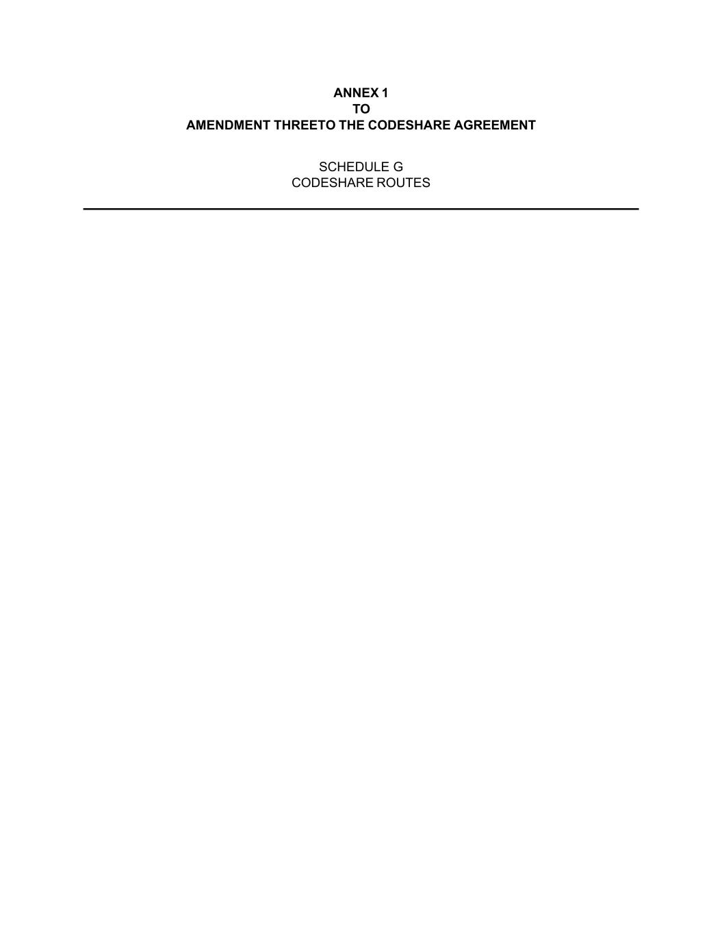 ANNEX 1 TO AMENDMENT THREETO THE CODESHARE AGREEMENT SCHEDULE G CODESHARE ROUTES