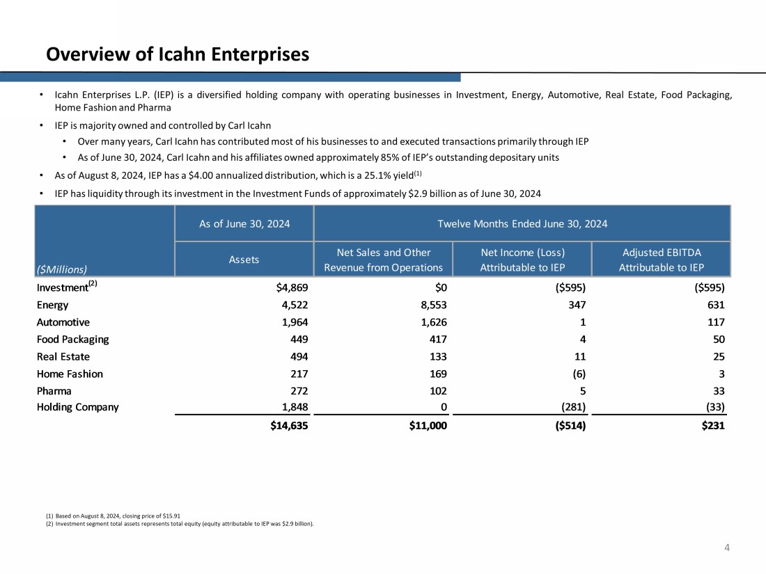 Icahn Enterprises L.P. Investor Presentation August 2024