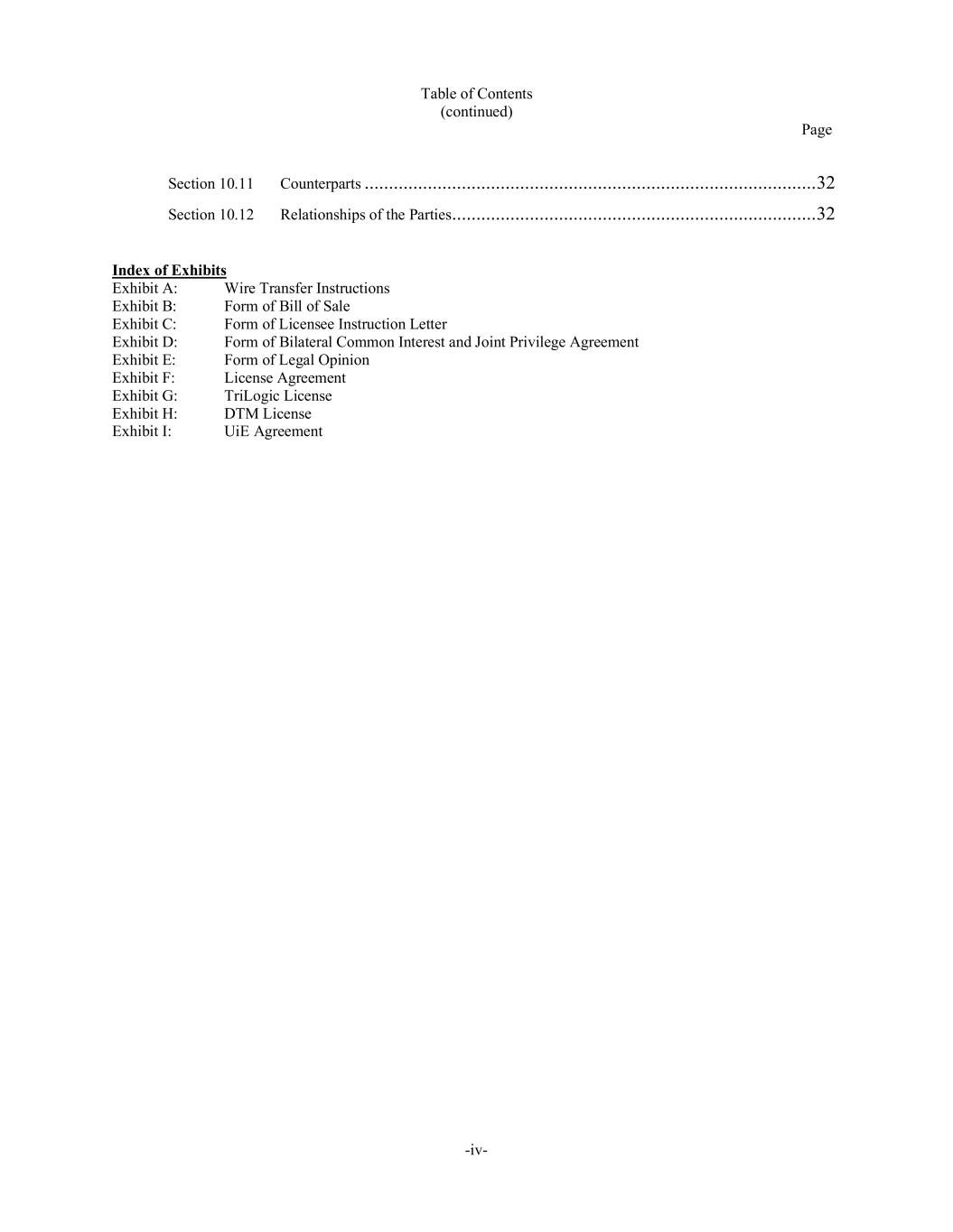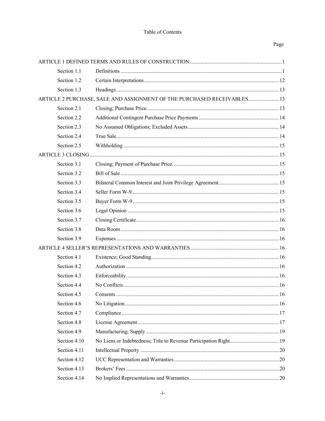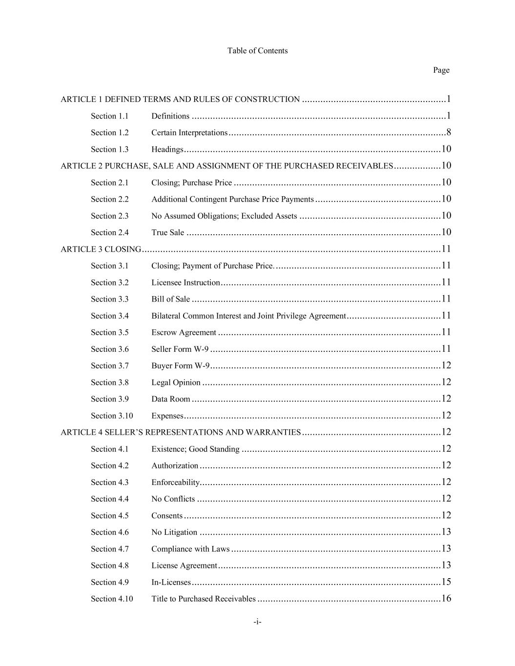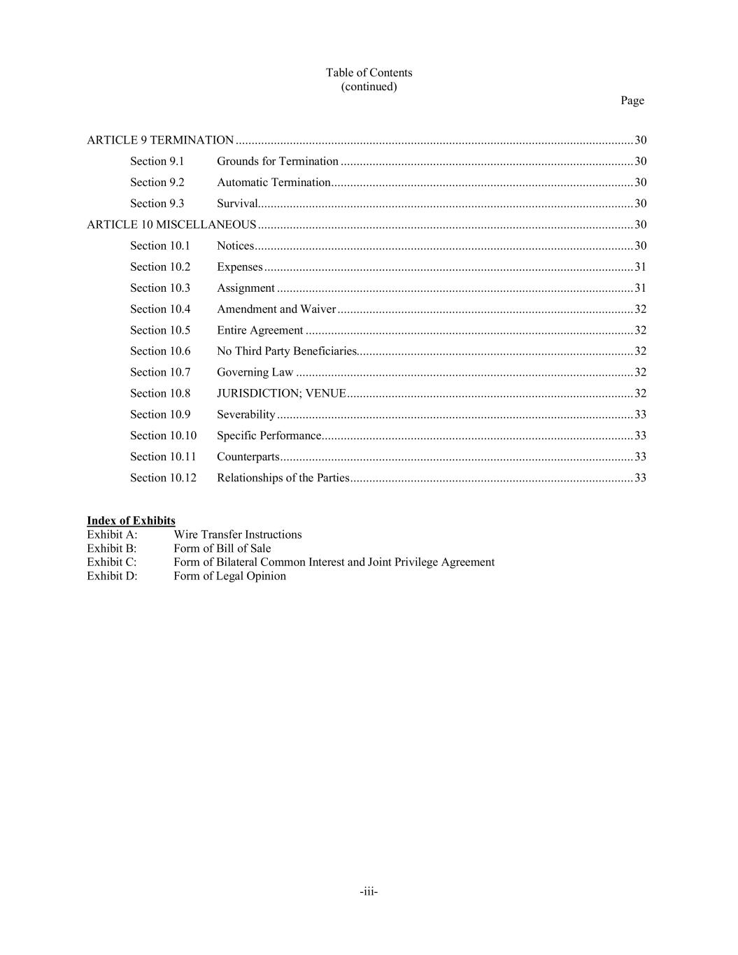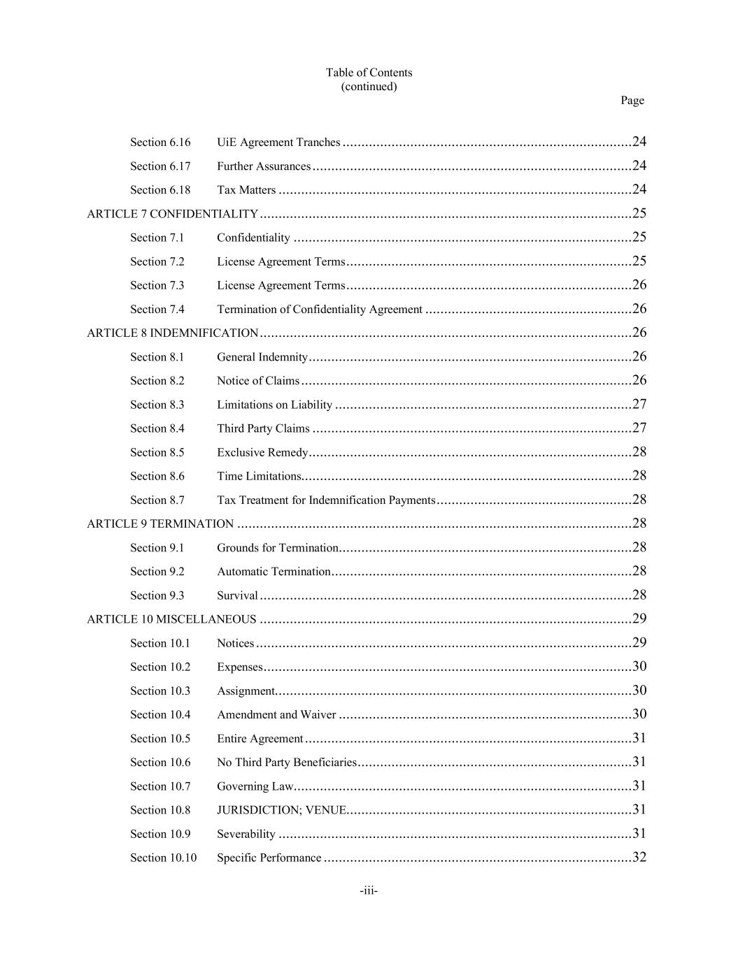 TABLE OF CONTENTS