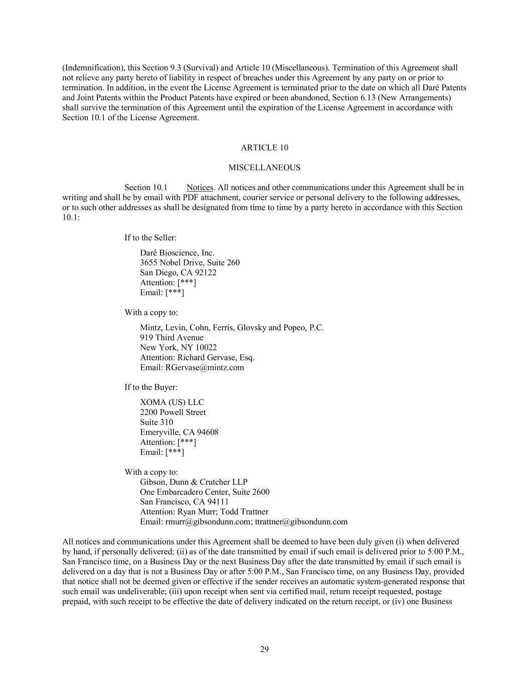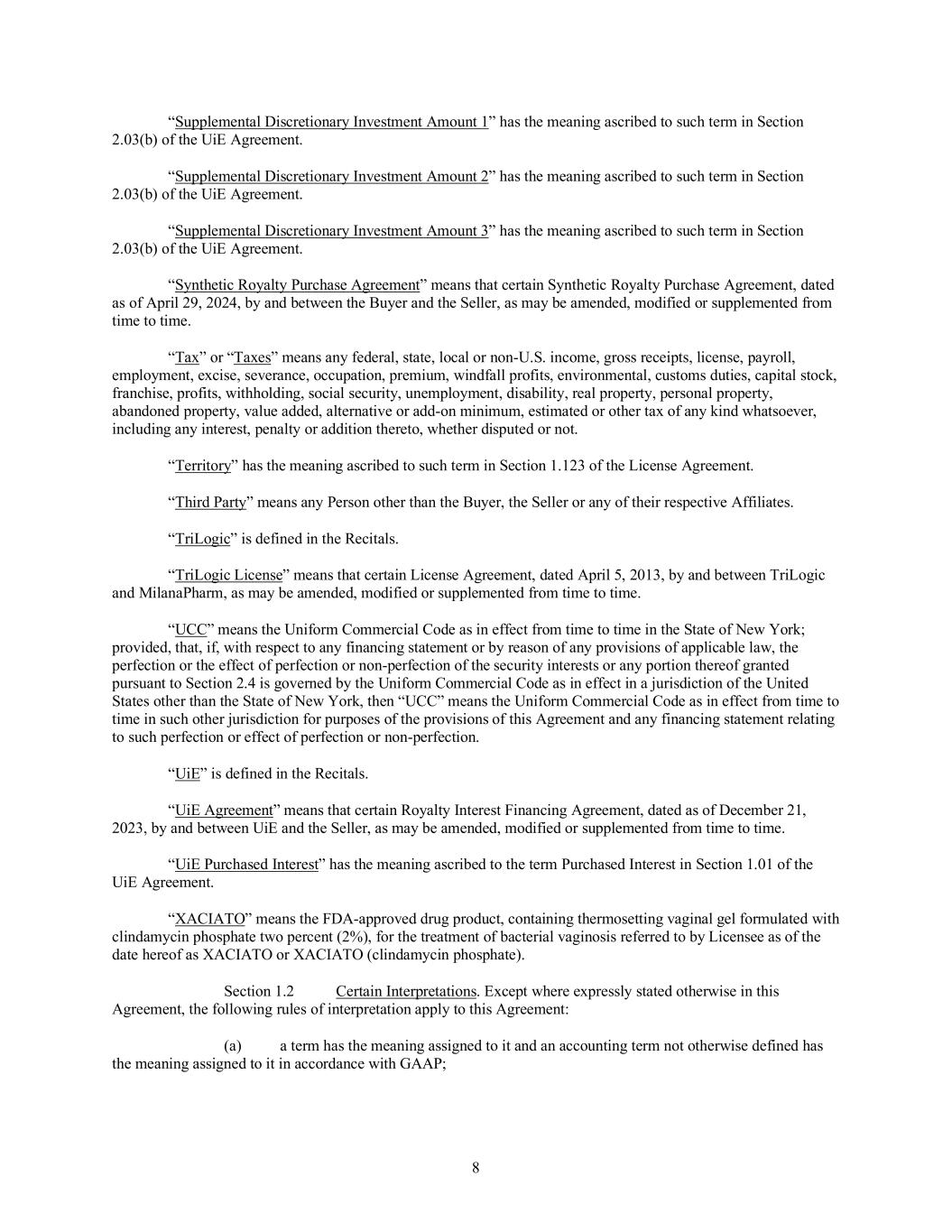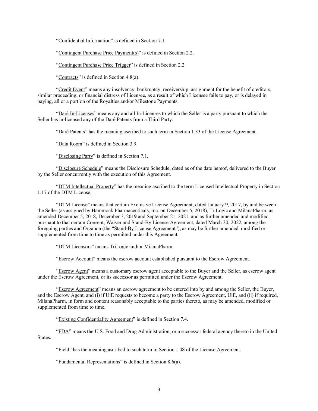•Termination by a collaborator of our respective out-license agreements for commercialization of XACIATO™ (clindamycin phosphate) vaginal gel 2%, or XACIATO, and Ovaprene®, or, in the case of Ovaprene, a decision by the collaborator not to make the license grant fully effective following its review of the results of the ongoing pivotal clinical trial of Ovaprene;