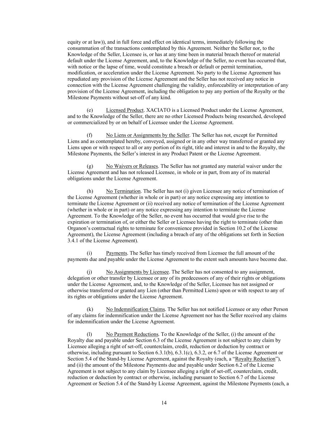 •The timing and amount of our payment and other obligations under our in-license and acquisition agreements for XACIATO and our product candidates;