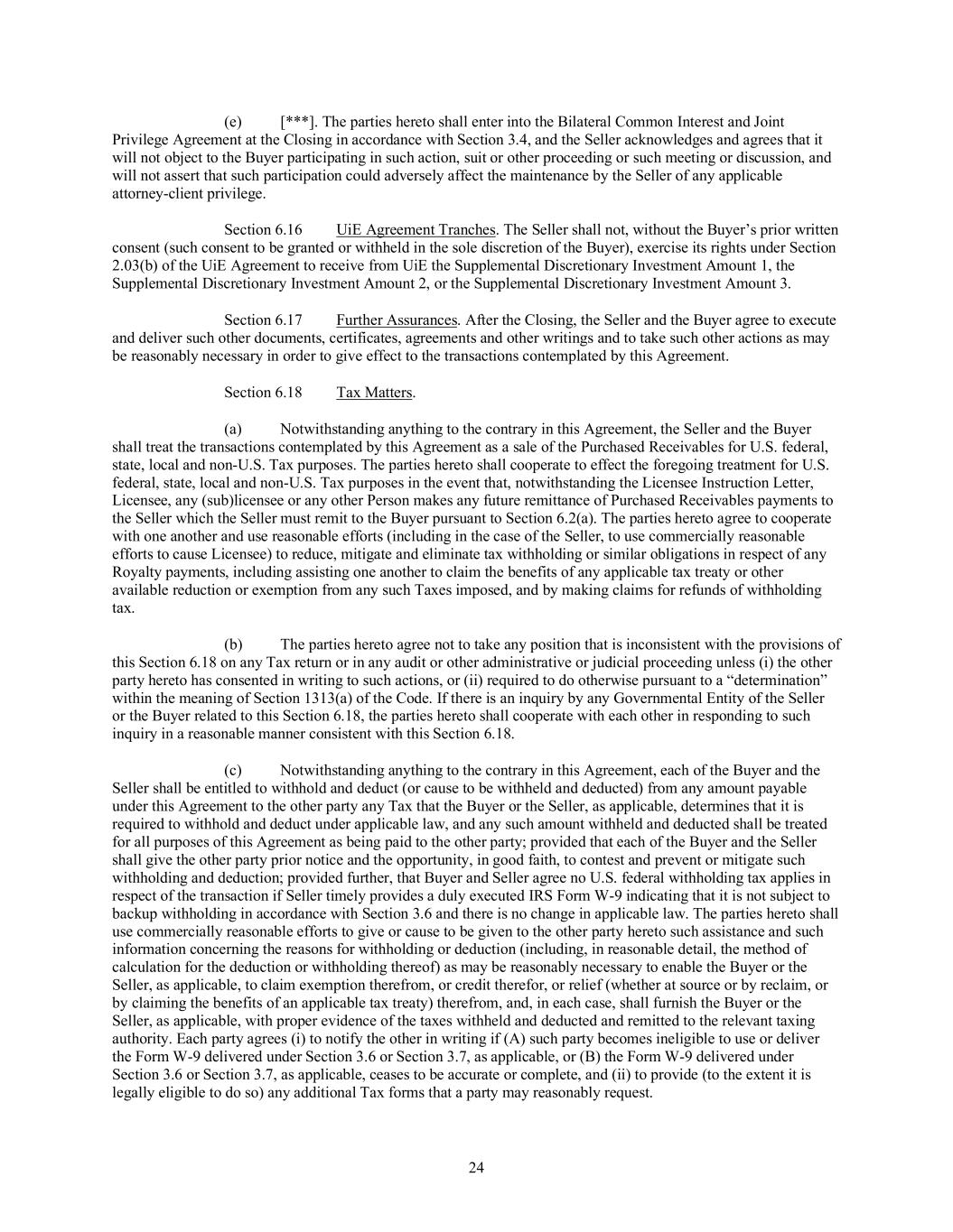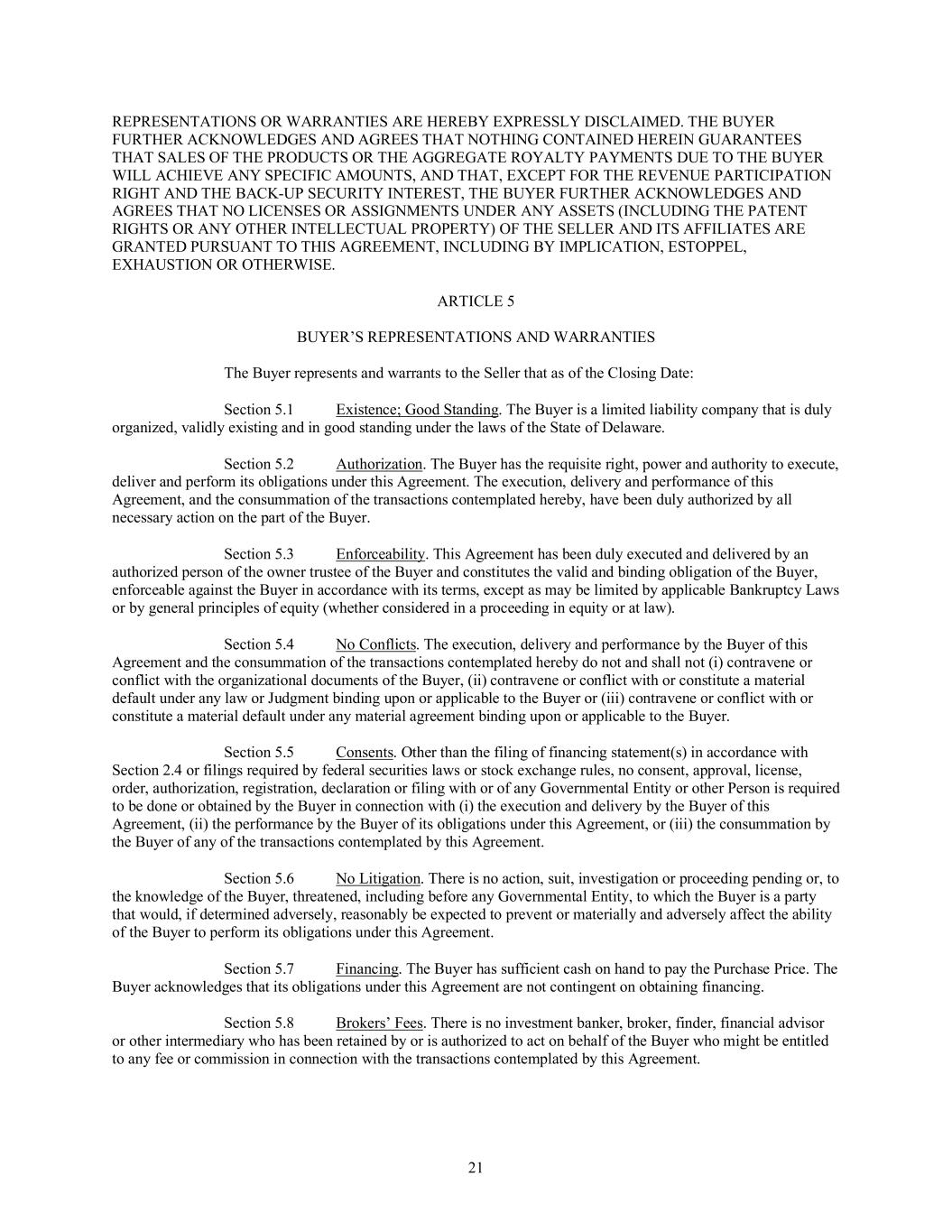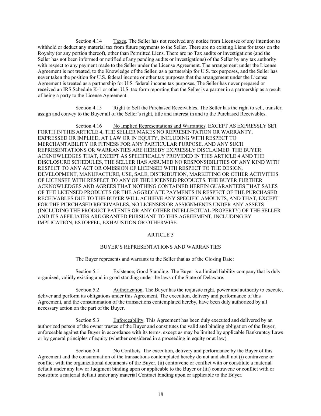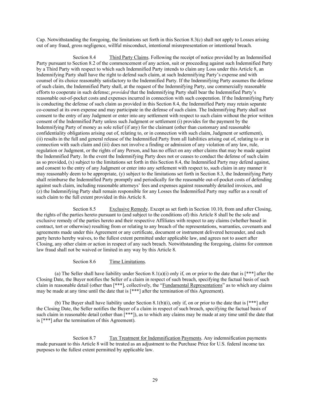The Company makes no representations or warranty and shall have no liability to the Participant or any other person if any provisions of or payments, compensation or other benefits under the Plan are determined to constitute nonqualified deferred compensation subject to Section 409A of the Code but do not satisfy the conditions of that Code section.