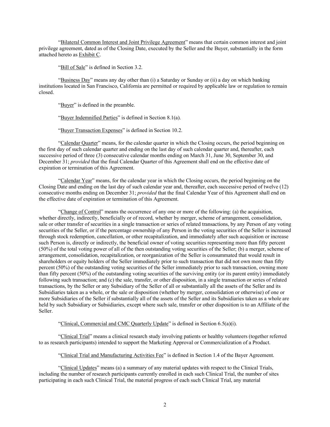 (1) Definition. A “Reorganization Event” shall mean: (a) any merger or consolidation of the Company with or into another entity as a result of which all of the Common Stock of the Company is converted into or exchanged for the right to receive cash, securities or other property or is cancelled, (b) any transfer or disposition of all of the Common Stock of the Company for cash, securities or other property pursuant to a share exchange or other transaction or (c) any liquidation or dissolution of the Company.