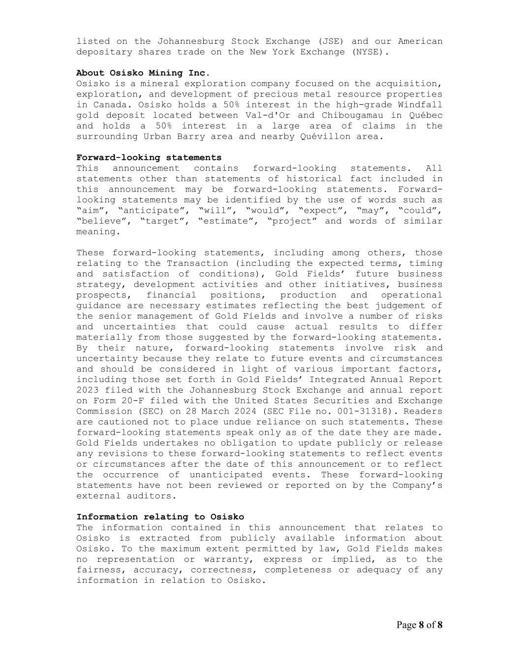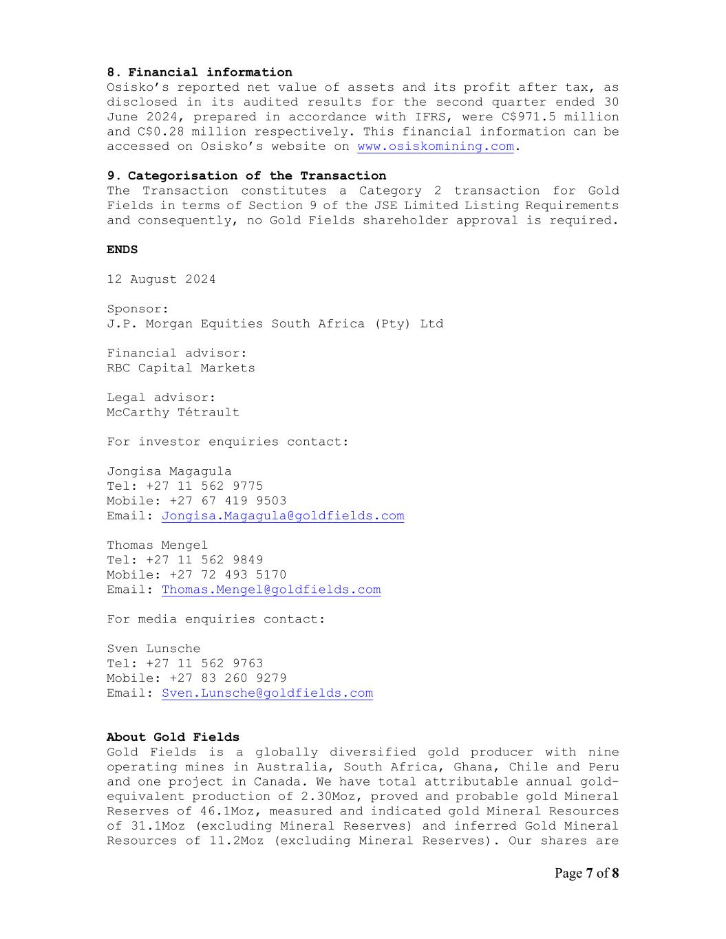 | Gold Fields Limited |