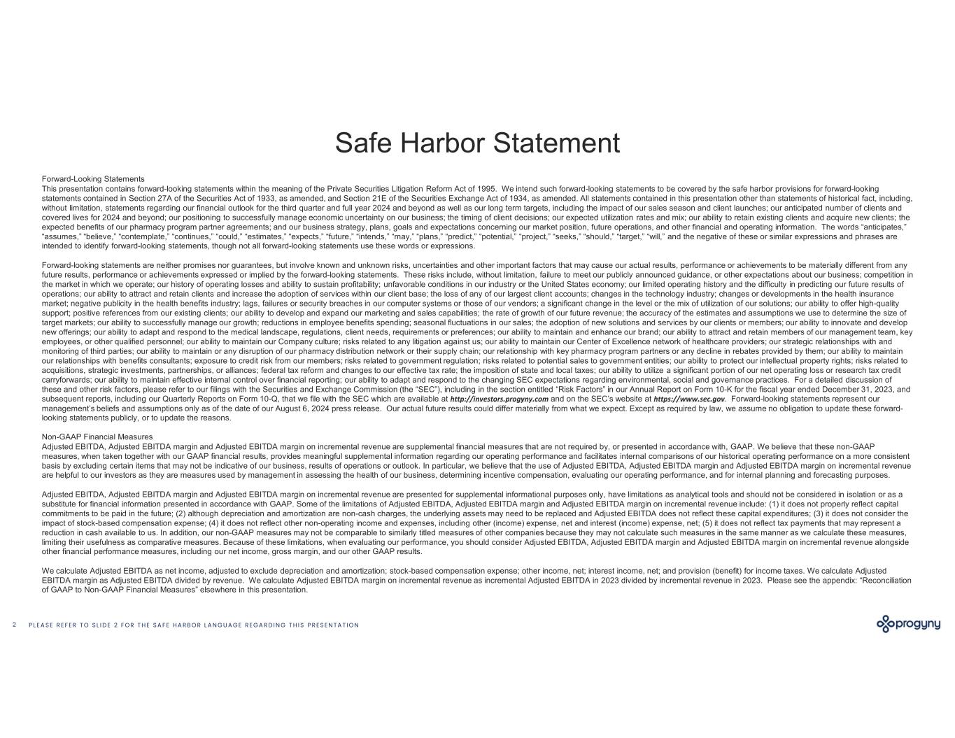 P L E A S E R E F E R T O S L I D E 2 F O R T H E S A F E H A R B O R L A N G U A G E R E G A R D I N G T H I S P R E S E N T A T I O N1 Progyny Investor Day August 2024