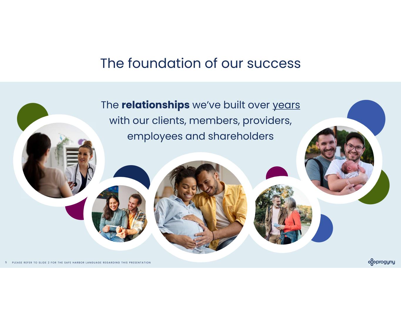 P L E A S E R E F E R T O S L I D E 2 F O R T H E S A F E H A R B O R L A N G U A G E R E G A R D I N G T H I S P R E S E N T A T I O N5 The foundation of our success The relationships we’ve built over years with our clients, members, providers, employees and shareholders