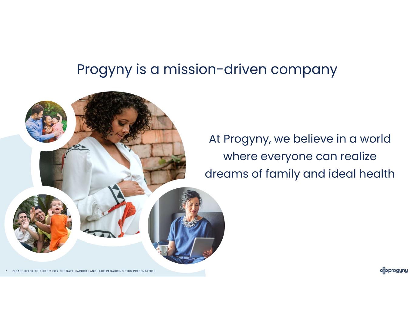 P L E A S E R E F E R T O S L I D E 2 F O R T H E S A F E H A R B O R L A N G U A G E R E G A R D I N G T H I S P R E S E N T A T I O N7 At Progyny, we believe in a world where everyone can realize dreams of family and ideal health Progyny is a mission-driven company