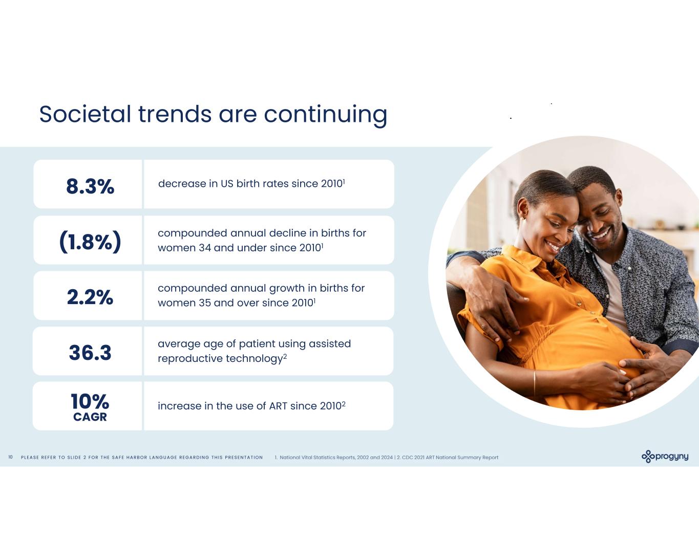 P L E A S E R E F E R T O S L I D E 2 F O R T H E S A F E H A R B O R L A N G U A G E R E G A R D I N G T H I S P R E S E N T A T I O N10 compounded annual decline in births for women 34 and under since 20101 Societal trends are continuing (1.8%) average age of patient using assisted reproductive technology236.3 compounded annual growth in births for women 35 and over since 201012.2% 8.3% decrease in US birth rates since 20101 10% CAGR increase in the use of ART since 20102