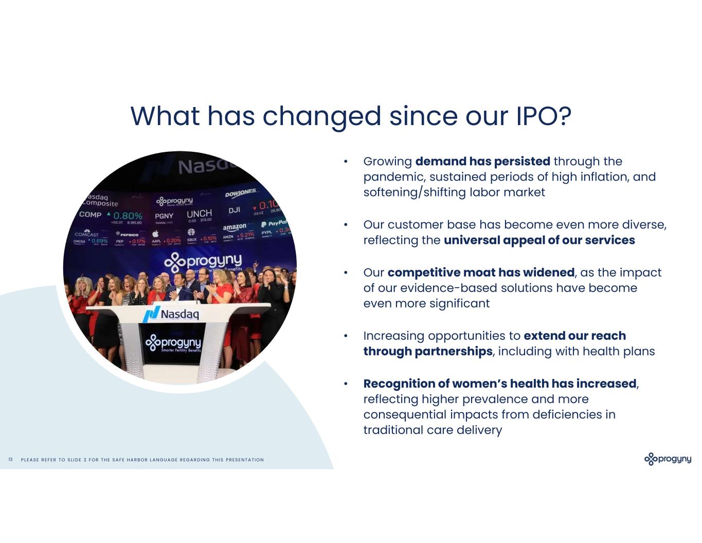 P L E A S E R E F E R T O S L I D E 2 F O R T H E S A F E H A R B O R L A N G U A G E R E G A R D I N G T H I S P R E S E N T A T I O N13 What has changed since our IPO? • Growing demand has persisted through the pandemic, sustained periods of high inflation, and softening/shifting labor market • Our customer base has become even more diverse, reflecting the universal appeal of our services • Our competitive moat has widened, as the impact of our evidence-based solutions have become even more significant • Increasing opportunities to extend our reach through partnerships, including with health plans • Recognition of women’s health has increased, reflecting higher prevalence and more consequential impacts from deficiencies in traditional care delivery