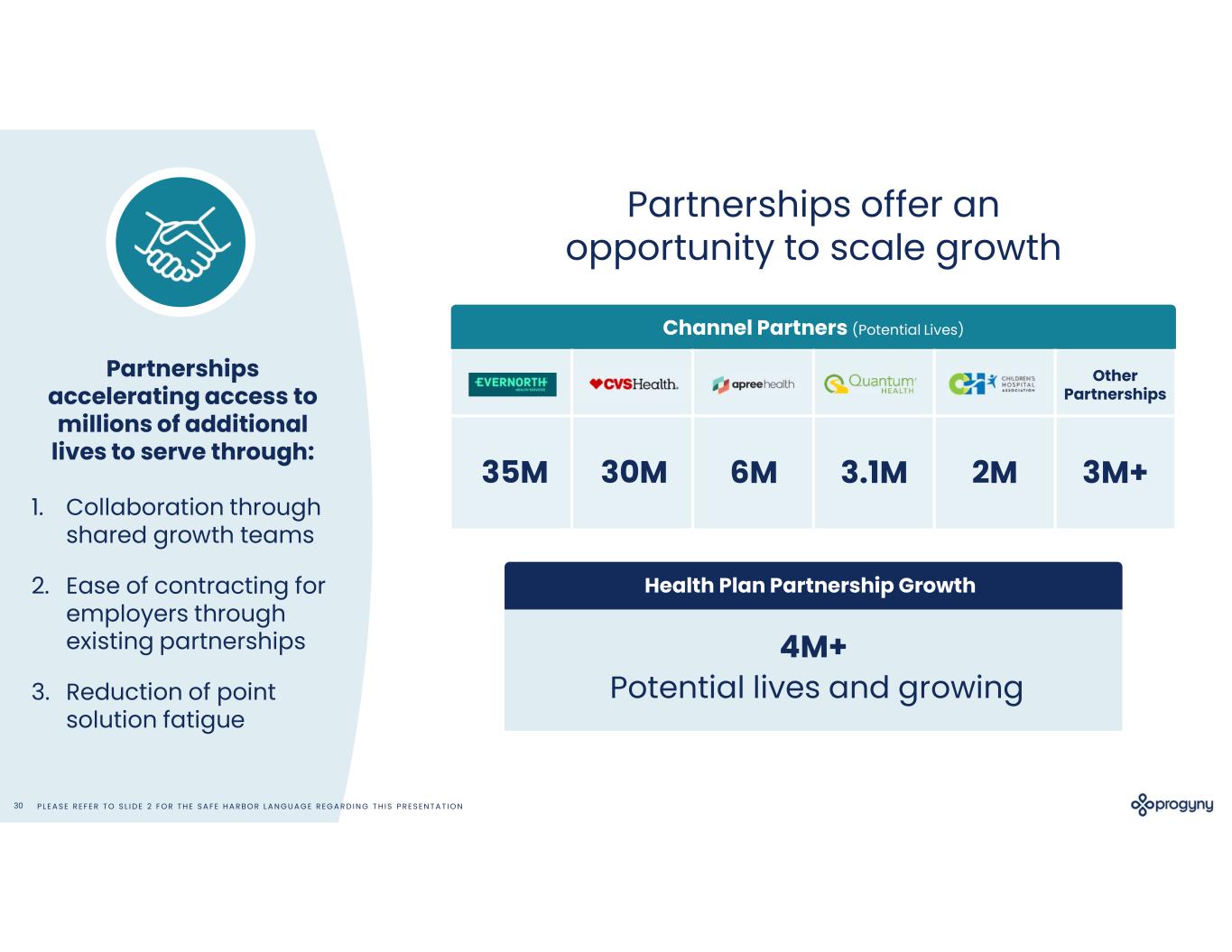 P L E A S E R E F E R T O S L I D E 2 F O R T H E S A F E H A R B O R L A N G U A G E R E G A R D I N G T H I S P R E S E N T A T I O N30 Partnerships accelerating access to millions of additional lives to serve through: 1. Collaboration through shared growth teams 2. Ease of contracting for employers through existing partnerships 3. Reduction of point solution fatigue Partnerships offer an opportunity to scale growth 30M35M 3.1M 4M+ Potential lives and growing 6M 2M Channel Partners (Potential Lives) Health Plan Partnership Growth Other Partnerships 3M+