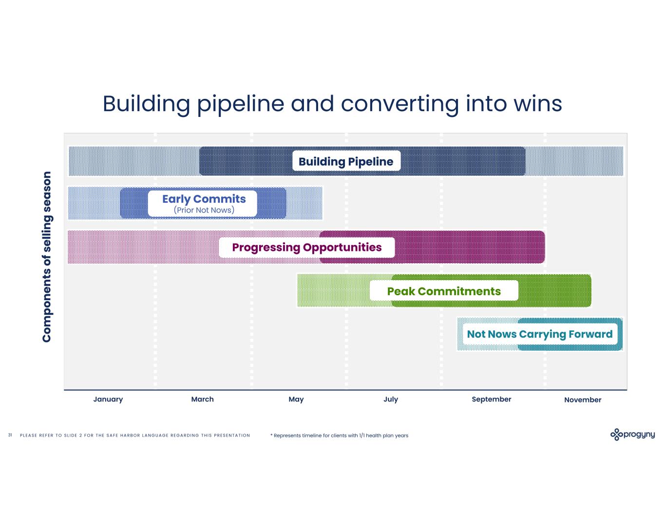 P L E A S E R E F E R T O S L I D E 2 F O R T H E S A F E H A R B O R L A N G U A G E R E G A R D I N G T H I S P R E S E N T A T I O N31 * Represents timeline for clients with 1/1 health plan years Building pipeline and converting into wins January March May July September November C om po ne nt s of se lli ng s ea so n Building Pipeline Progressing Opportunities Peak Commitments Not Nows Carrying Forward Early Commits (Prior Not Nows)