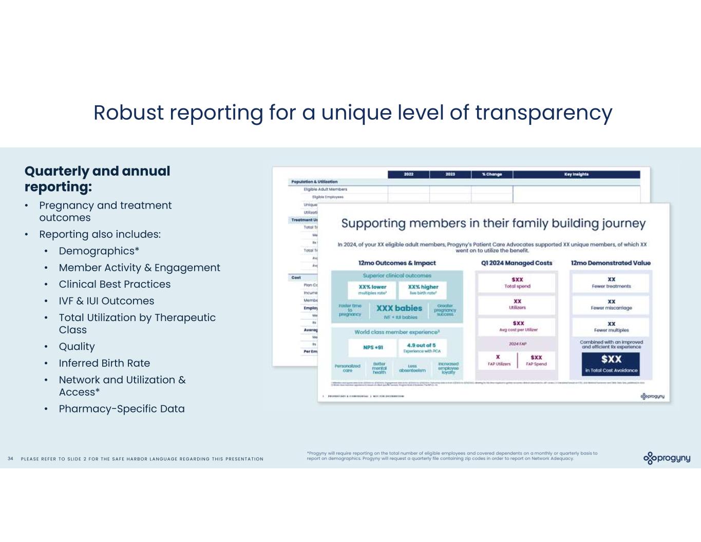 P L E A S E R E F E R T O S L I D E 2 F O R T H E S A F E H A R B O R L A N G U A G E R E G A R D I N G T H I S P R E S E N T A T I O N33 0-30 Days 30-60 Days 60-90 Days Monitor Member Engagement Streamlined implementation and member experience “ ” There is absolutely nothing I can recommend that would enhance the Progyny implementation experience - it was PERFECT! I wish all vendor/benefit implementations were this easy! “ ” It was truly an exceptional experience. Without question, I would share with other HR colleagues and refer them in the future. Kick-off and Integration Launch Benefit Coordination and Communication Integration Complete & Member Support Launches Progyny Client Progyny Client Go Live