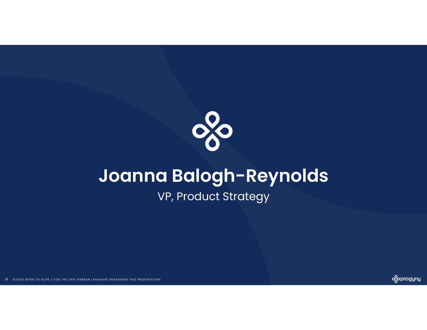 P L E A S E R E F E R T O S L I D E 2 F O R T H E S A F E H A R B O R L A N G U A G E R E G A R D I N G T H I S P R E S E N T A T I O N39 Joanna Balogh-Reynolds VP, Product Strategy