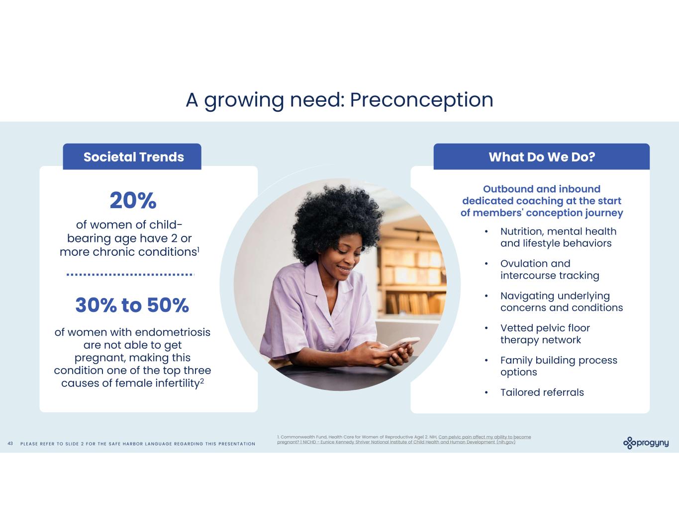 P L E A S E R E F E R T O S L I D E 2 F O R T H E S A F E H A R B O R L A N G U A G E R E G A R D I N G T H I S P R E S E N T A T I O N47 Women and Health A specialized benefits platform created to expedite interventions addressing interconnected health issues that are diagnosed or treated disparately in women. PROGYNY Fertility & Family Building Care Specialized Conditions Ancillary Services Pelvic floor Mental Health Lactation & milk shipping Parenting & Caregiver Support Social Determinants Nutrition & Lifestyle Menstruation PregnancyPCOS Endometriosis Autoimmune CardiacDiabetes Preeclampsia & hypertension Menopause Breast & gynecological cancers Thyroid Preconception Assisted Fertility AdoptionSurrogacy Pregnancy & postpartum Return-to-work Patient education Male infertility Fertility medicationsGenetic testing Weight management Care navigation & access to care Sexual Health Primary/well woman care LGBTQIA+ specific Stress & emotional support