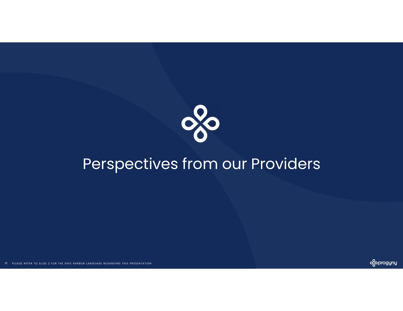 P L E A S E R E F E R T O S L I D E 2 F O R T H E S A F E H A R B O R L A N G U A G E R E G A R D I N G T H I S P R E S E N T A T I O N51 Perspectives from our Providers