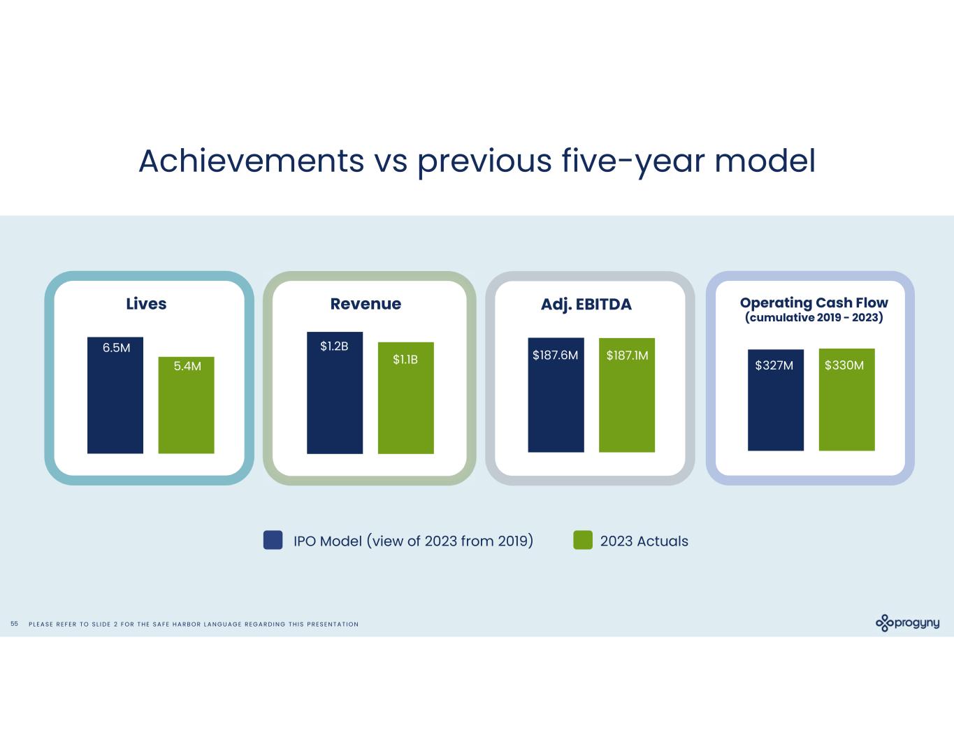P L E A S E R E F E R T O S L I D E 2 F O R T H E S A F E H A R B O R L A N G U A G E R E G A R D I N G T H I S P R E S E N T A T I O N55 Achievements vs previous five-year model IPO Model (view of 2023 from 2019) 2023 Actuals Revenue $1.2B $1.1B Adj. EBITDA $187.6M $187.1M Operating Cash Flow (cumulative 2019 - 2023) $327M $330M Lives 6.5M 5.4M