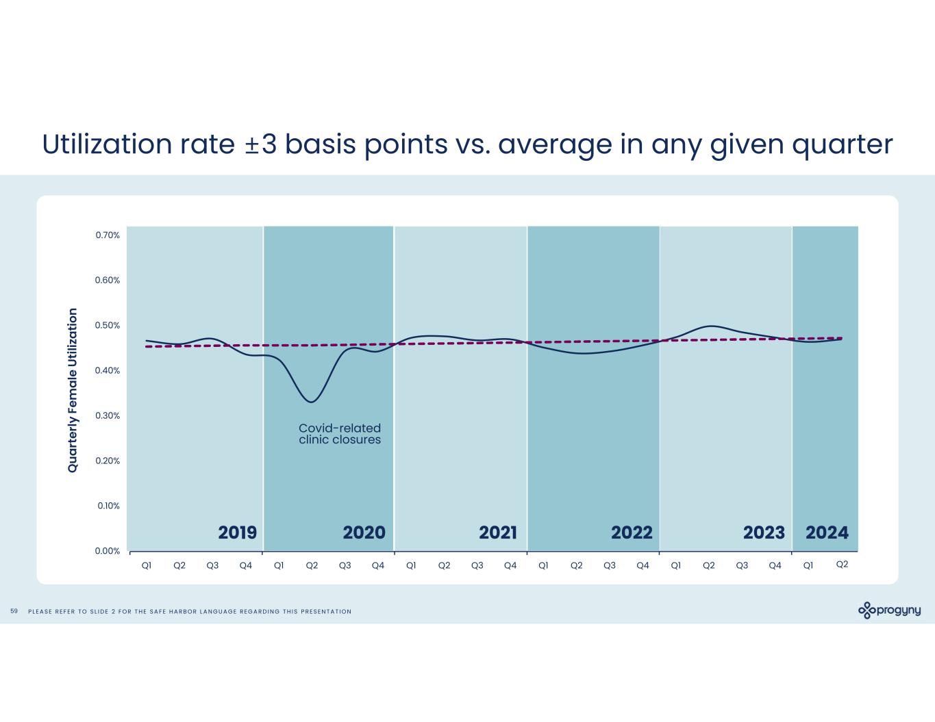 P L E A S E R E F E R T O S L I D E 2 F O R T H E S A F E H A R B O R L A N G U A G E R E G A R D I N G T H I S P R E S E N T A T I O N59 0.00% 0.10% 0.20% 0.30% 0.40% 0.50% 0.60% 0.70% Q1 Q2 Q3 Q4 Q1 Q2 Q3 Q4 Q1 Q2 Q3 Q4 Q1 Q2 Q3 Q4 Q1 Q2 Q3 Q4 Q1 Q4 2019 2020 2021 2022 2023 Covid-related clinic closures Utilization rate ±3 basis points vs. average in any given quarter Q ua rt er ly F em al e U til iz at io n 2024 2