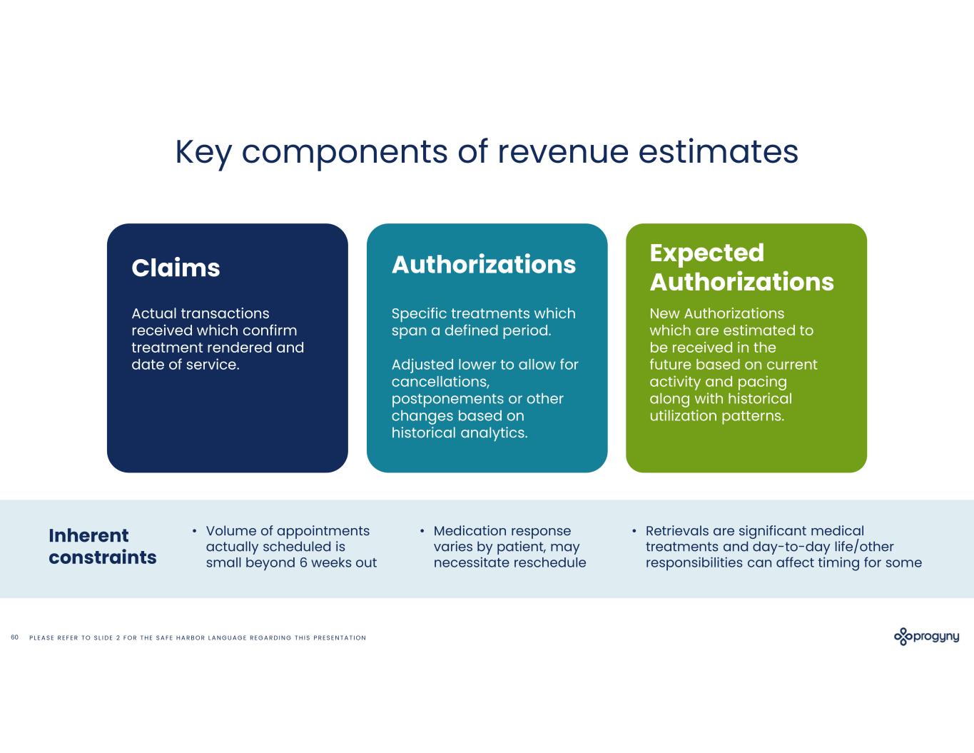 P L E A S E R E F E R T O S L I D E 2 F O R T H E S A F E H A R B O R L A N G U A G E R E G A R D I N G T H I S P R E S E N T A T I O N60 Key components of revenue estimates • Retrievals are significant medical treatments and day-to-day life/other responsibilities can affect timing for some • Volume of appointments actually scheduled is small beyond 6 weeks out • Medication response varies by patient, may necessitate reschedule Inherent constraints Authorizations Specific treatments which span a defined period. Adjusted lower to allow for cancellations, postponements or other changes based on historical analytics. Claims Actual transactions received which confirm treatment rendered and date of service. Expected Authorizations New Authorizations which are estimated to be received in the future based on current activity and pacing along with historical utilization patterns.