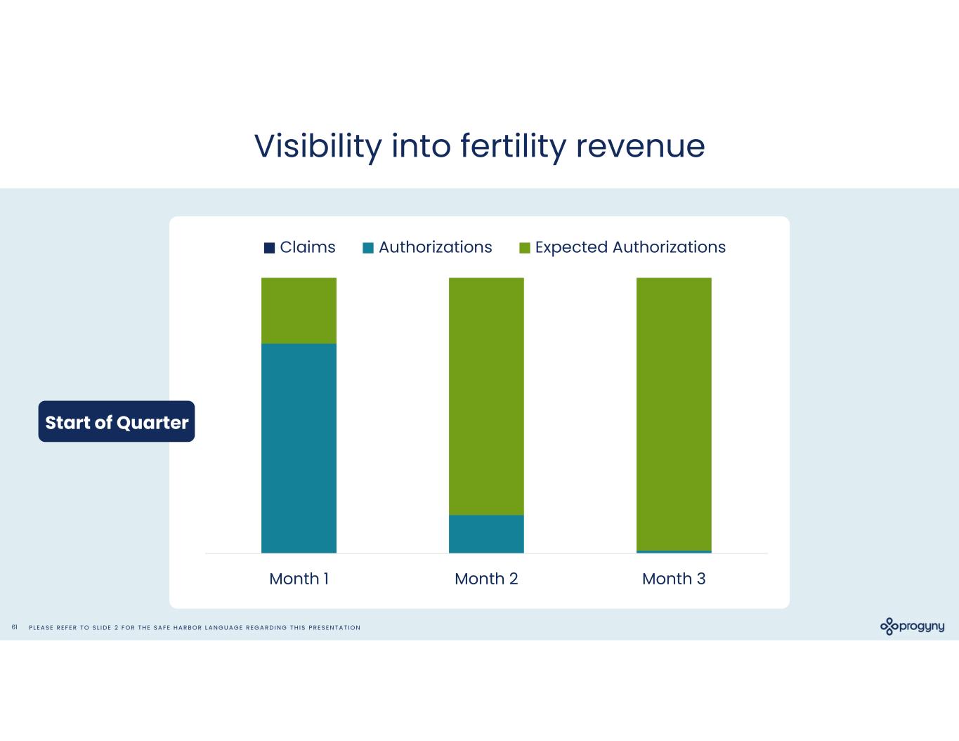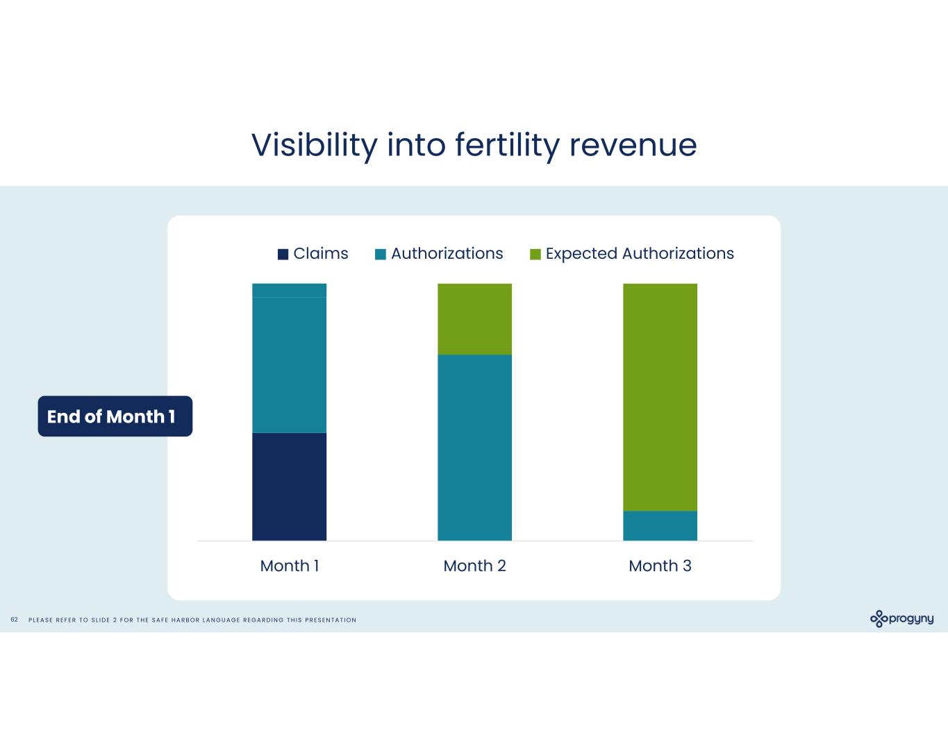 P L E A S E R E F E R T O S L I D E 2 F O R T H E S A F E H A R B O R L A N G U A G E R E G A R D I N G T H I S P R E S E N T A T I O N61 Visibility into fertility revenue Month 1 Month 2 Month 3 Claims Authorizations Expected Authorizations Start of Quarter