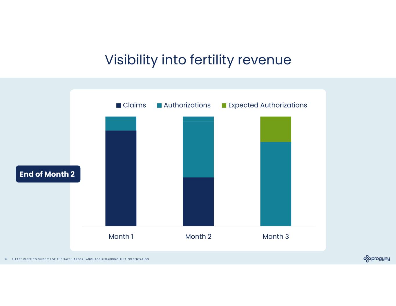 P L E A S E R E F E R T O S L I D E 2 F O R T H E S A F E H A R B O R L A N G U A G E R E G A R D I N G T H I S P R E S E N T A T I O N62 Visibility into fertility revenue Month 1 Month 2 Month 3 Claims Authorizations Expected Authorizations End of Month 1