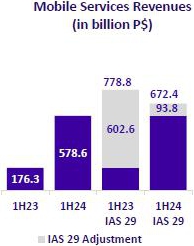 During 1H24, Consolidated Revenues amounted to P$1,666,979 million, from which Service Revenues totaled P$1,572,594 million.